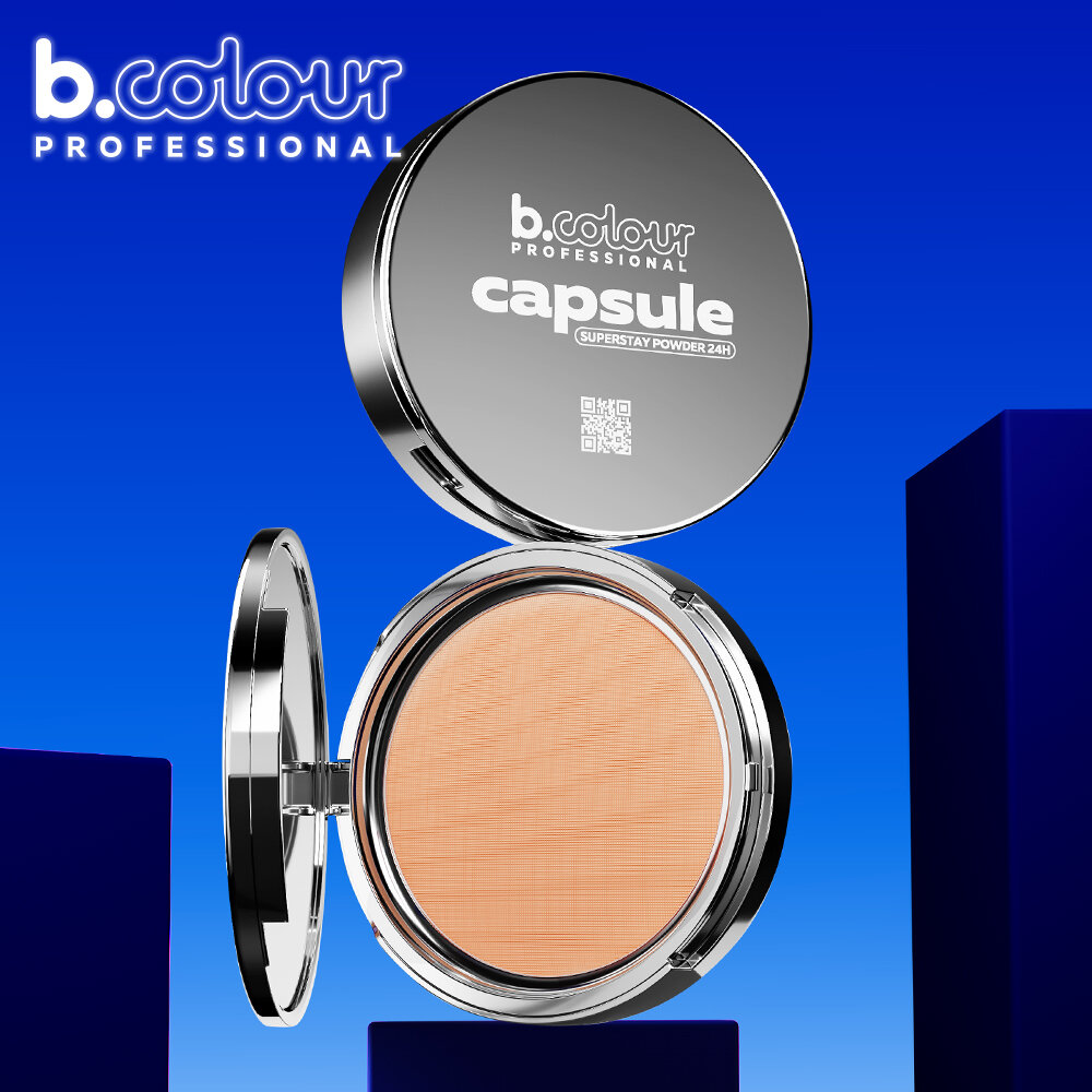 B.COLOUR PROFESSIONAL Пудра для лица матирующая фиксирующая компактная с зеркалом CAPSULE, 03 NEUTRAL