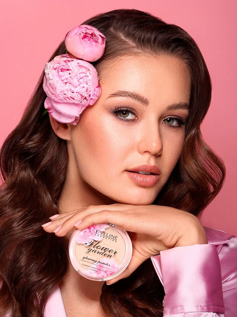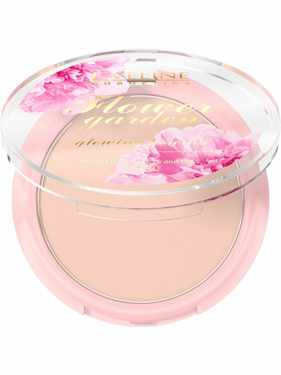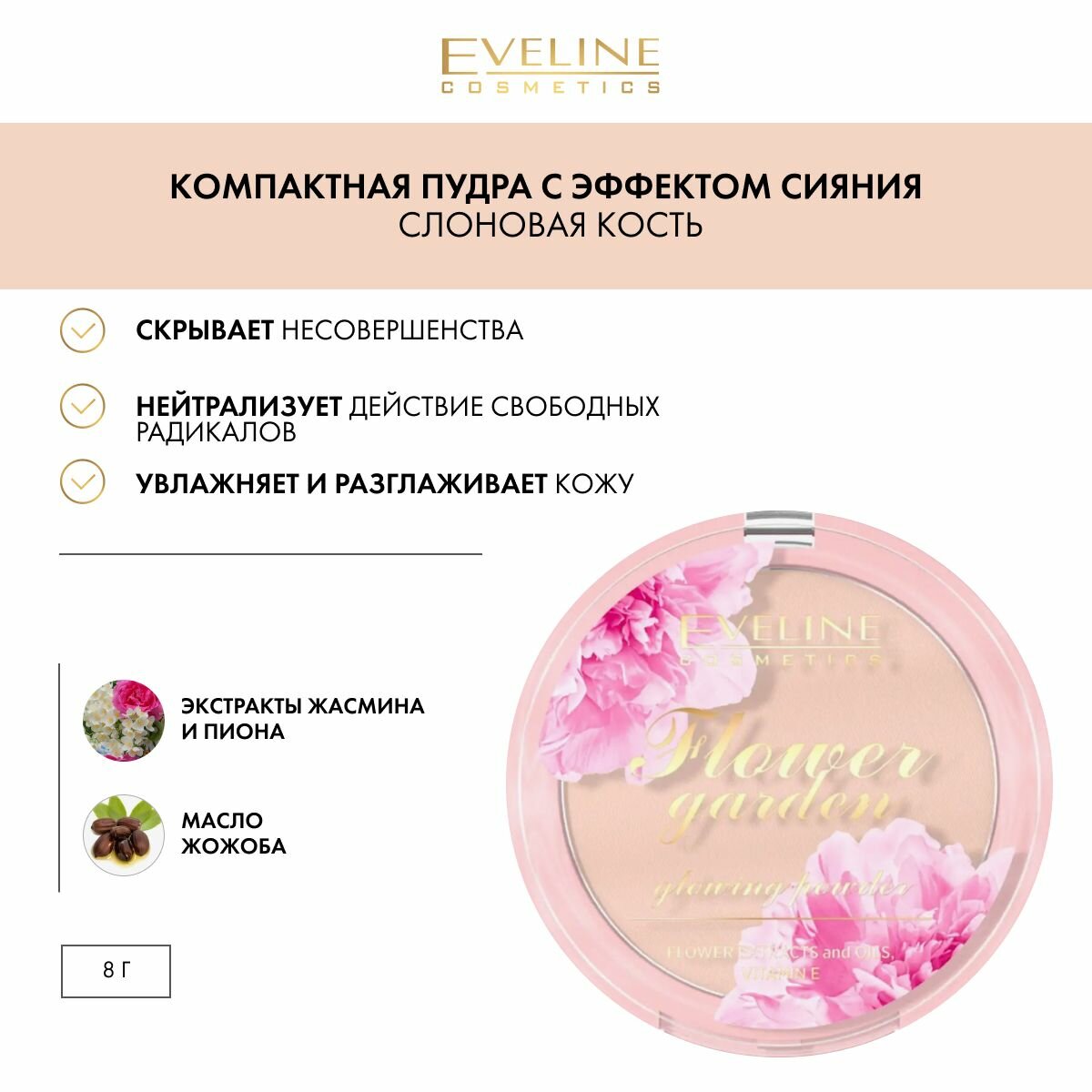 Компактная пудра для лица EVELINE FLOWER GARDEN с эффектом сияния тон - слоновая кость, 8 гр