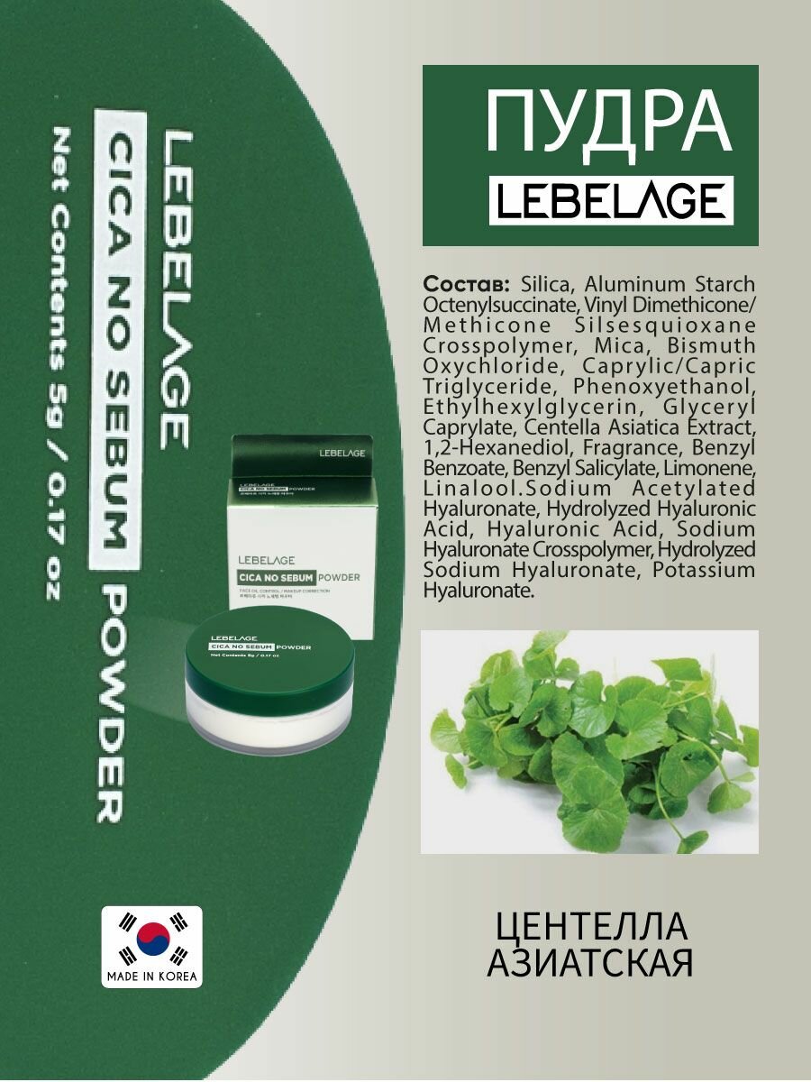 Купить LEBELAGE Матирующая рассыпчатая пудра с центеллой азиатской, 5г