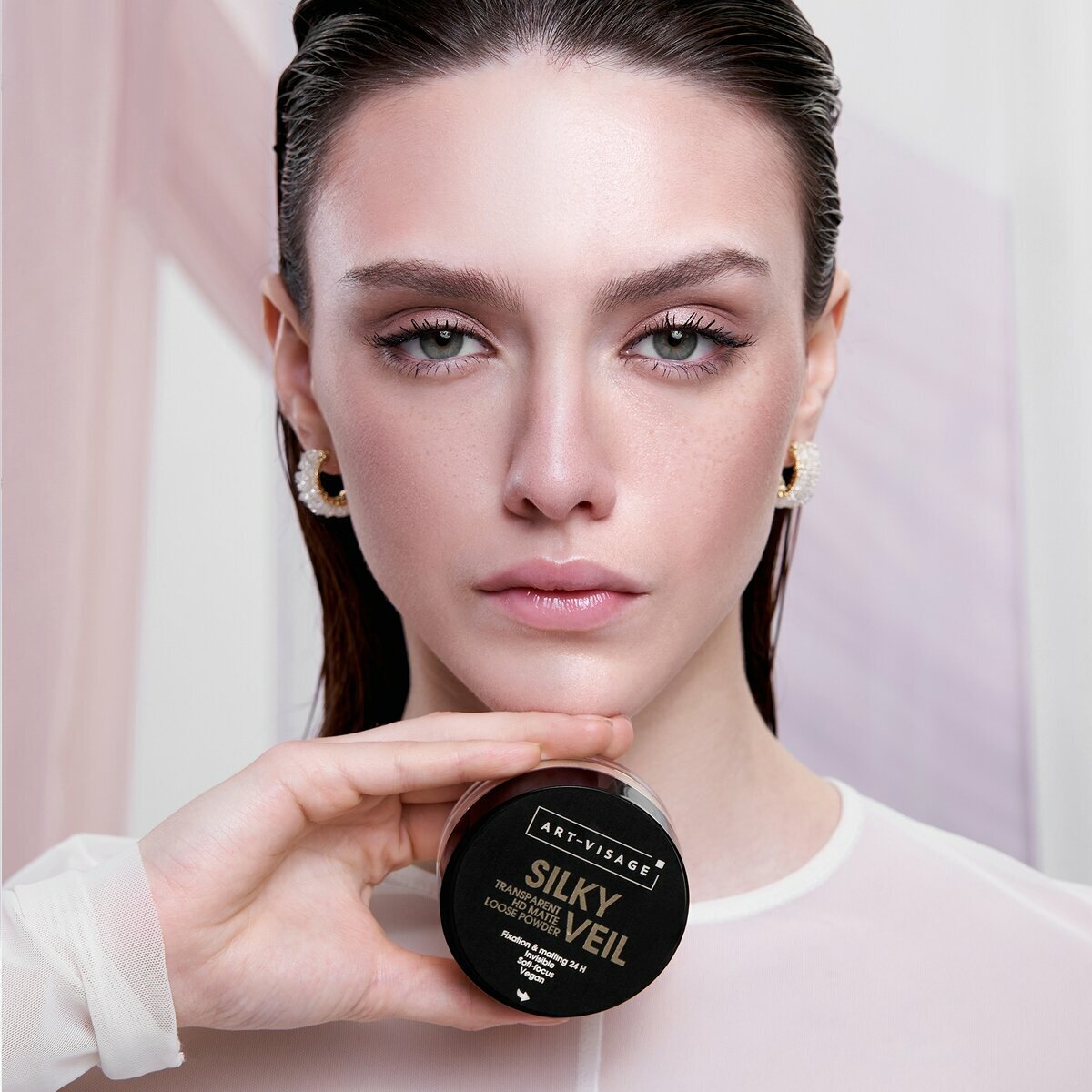 ART-VISAGE Пудра рассыпчатая "SILKY VEIL", 303 фиксирующая с сияющим финишем