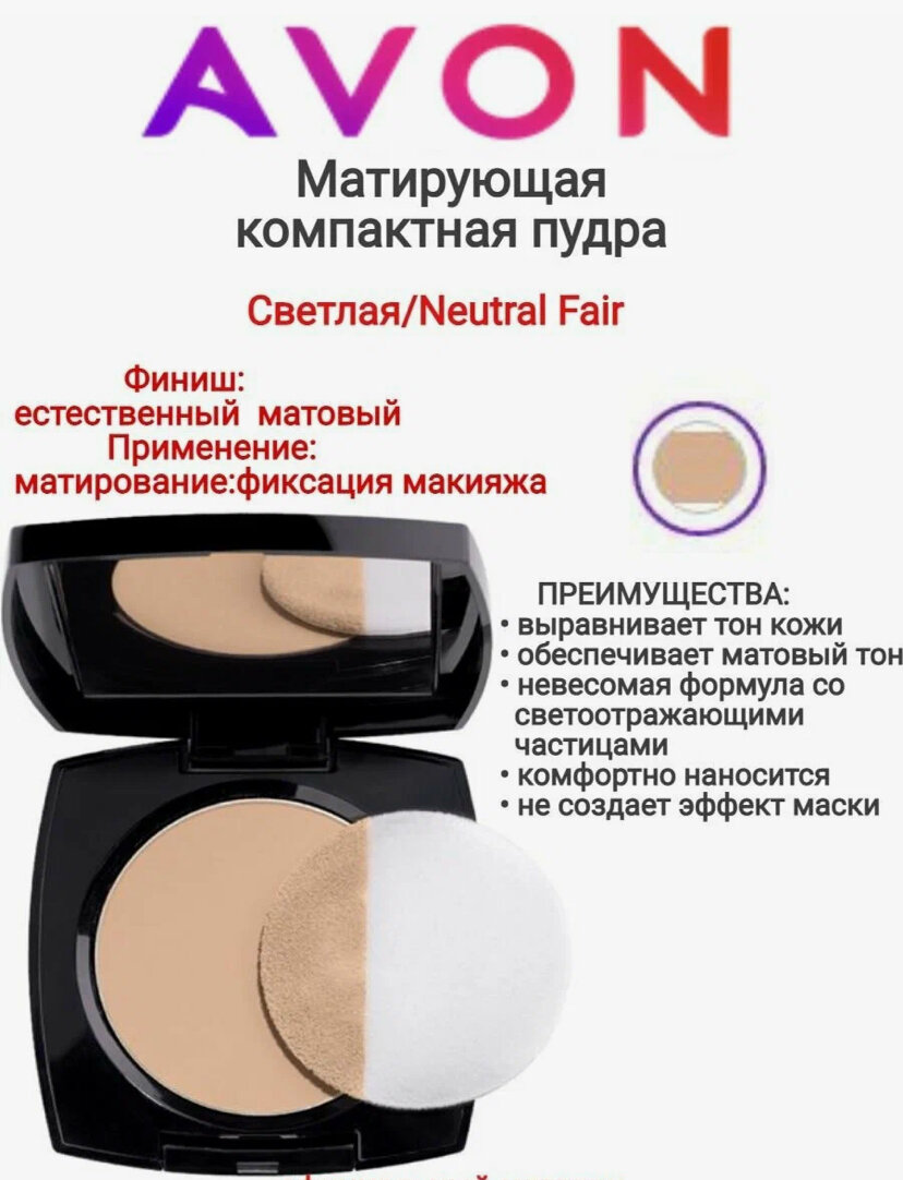 Avon True Color Матирующая компактная пудра для лица, Светлая(Neutral Fair) 8 г интересное: