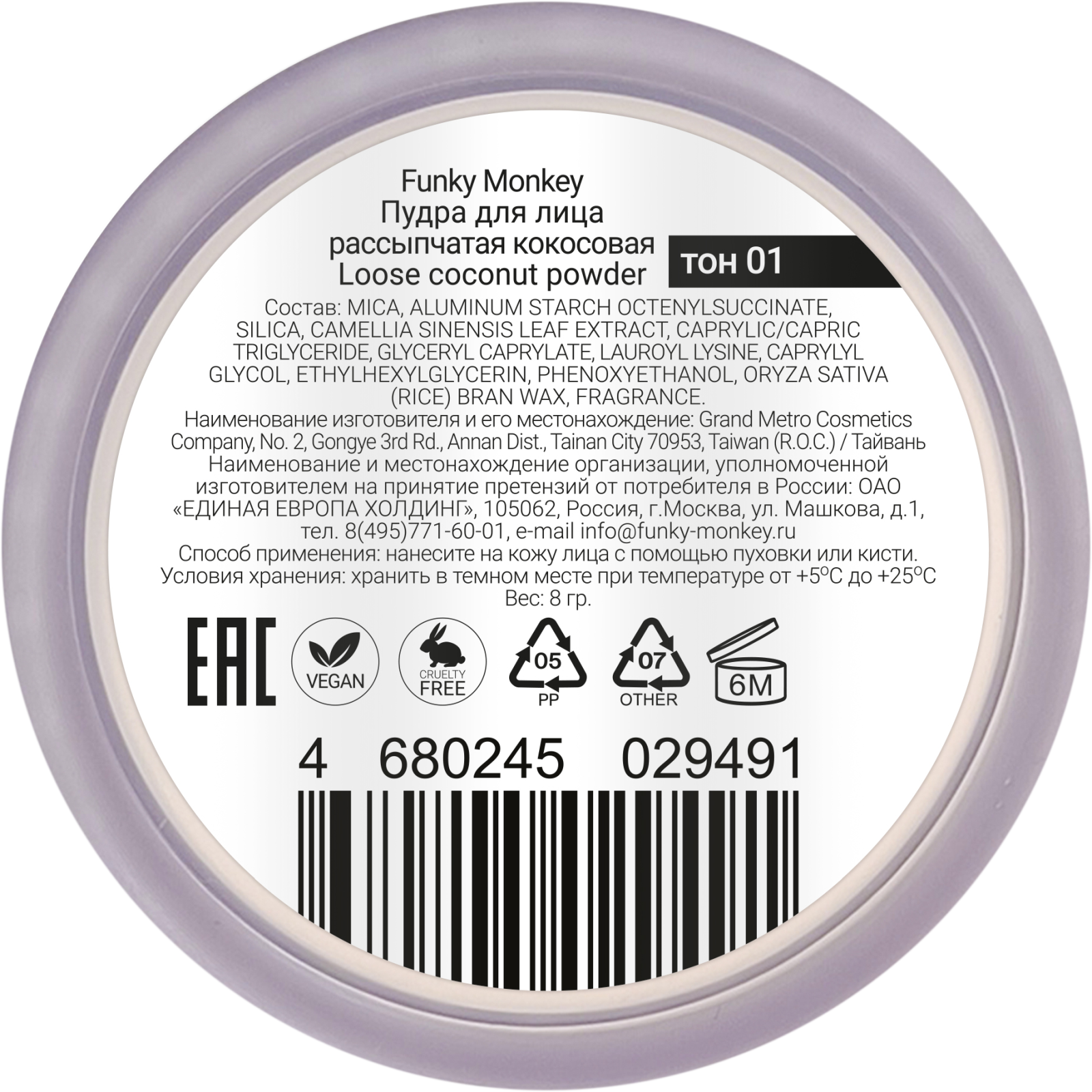 Funky Monkey Пудра для лица рассыпчатая кокосовая Loose coconut powder тон 01 интересное:
