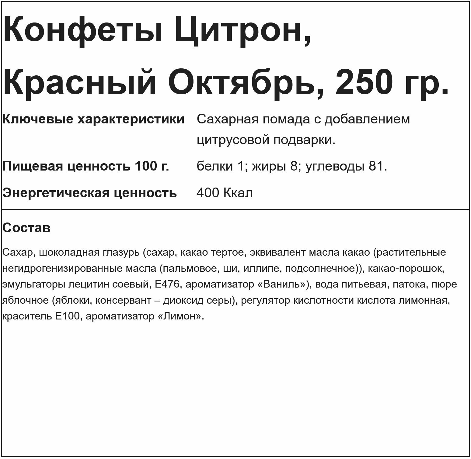 Конфеты Цитрон, Красный Октябрь, 250 гр. интересное: