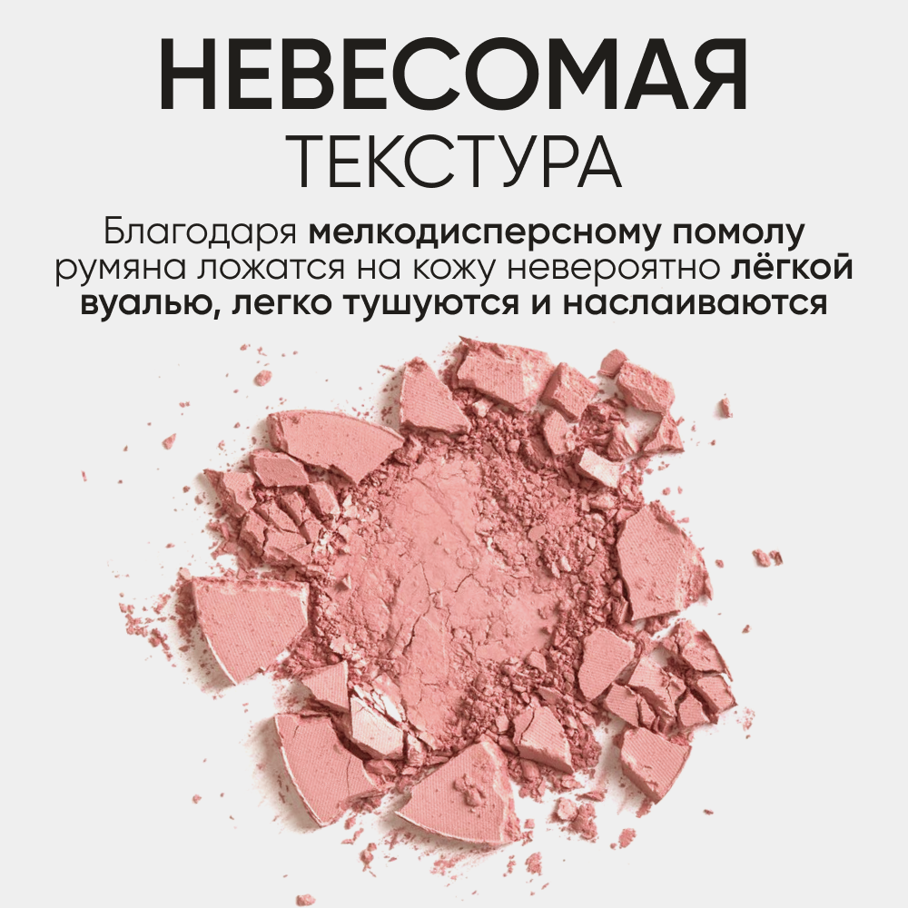 | Способ применения | при помощи кисти с натуральным ворсом нанесите румяна на яблочки щёк, растушуйте |