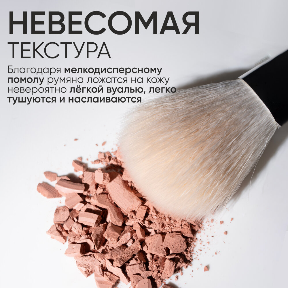 | Способ применения | при помощи кисти с натуральным ворсом нанесите румяна на яблочки щёк, растушуйте |