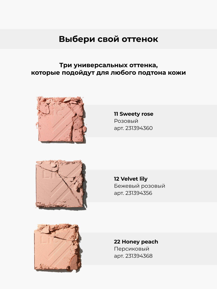 Lic Румяна для лица матовые Matte Blush 10 гр 11 Sweety rose Лик