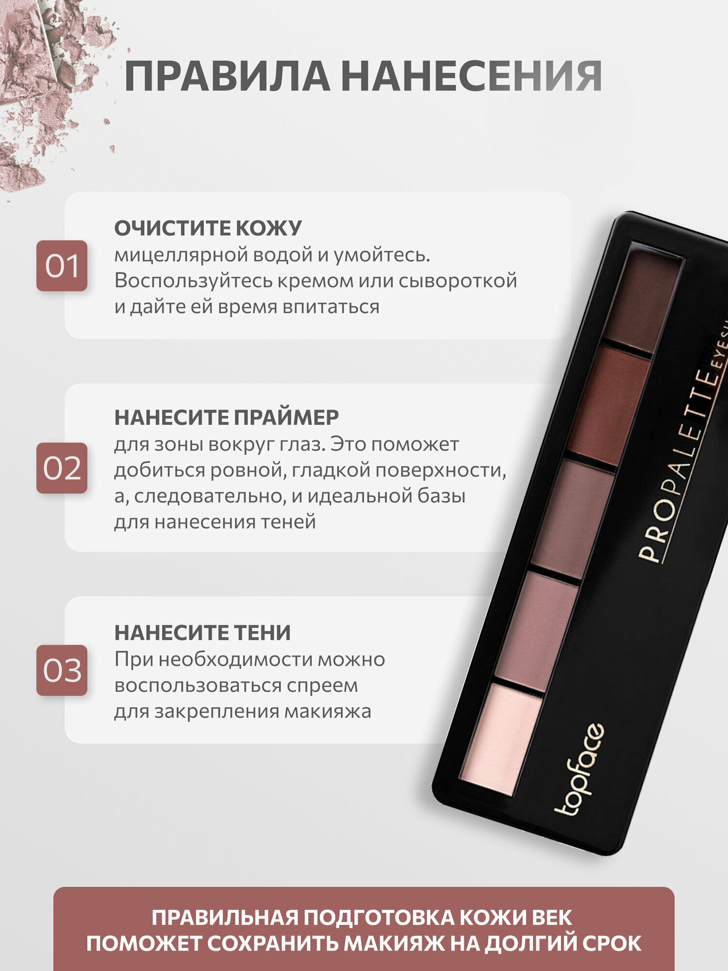 Тени для век Topface, серый цвет, матовые и сверкающие тени, компактная текстура, палетка 014