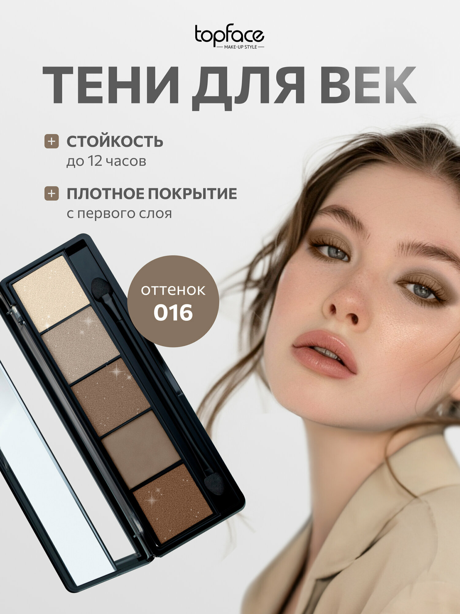 Тени для век TopFace 019, матовые, бежевые, компактные, палетка