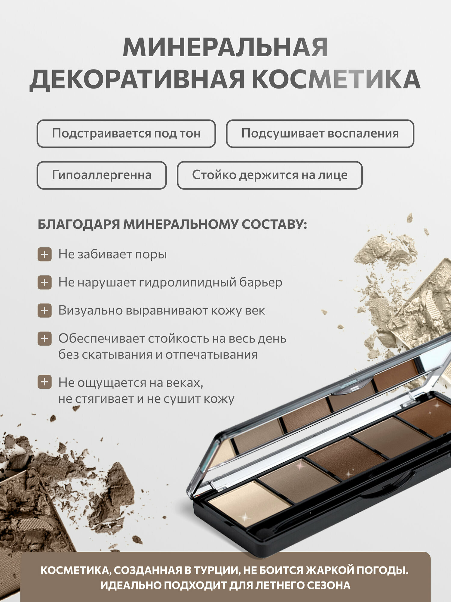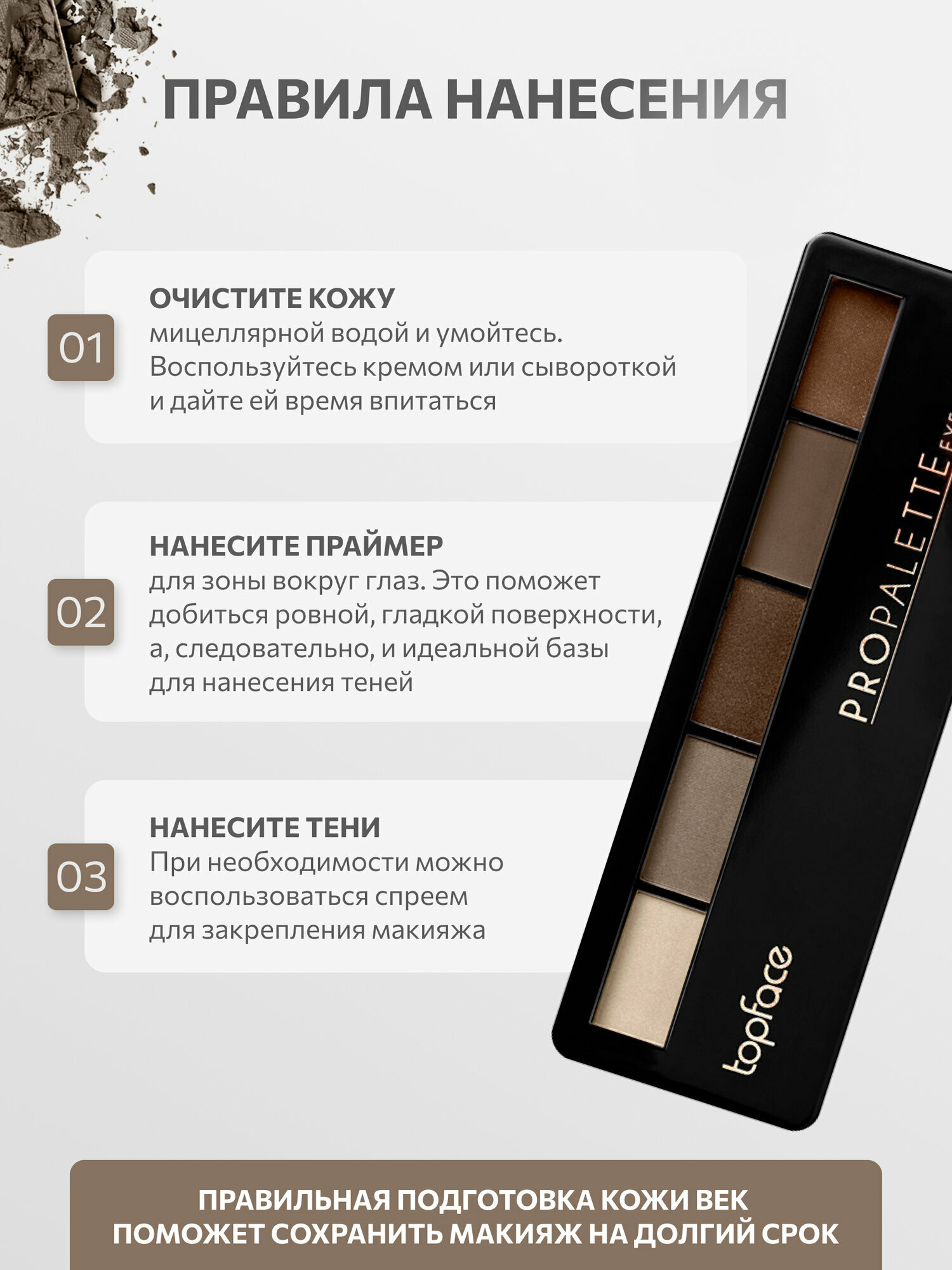 Тени для век Topface, серый цвет, матовые и сверкающие тени, компактная текстура, палетка 014