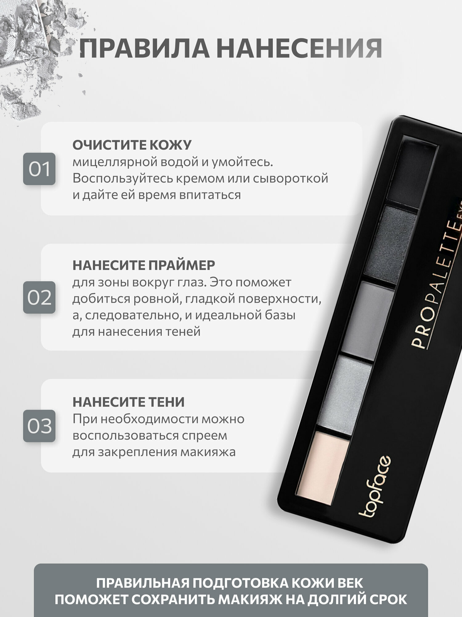 Купить Тени для век Topface, серый цвет, матовые и сверкающие тени, компактная текстура, палетка 014