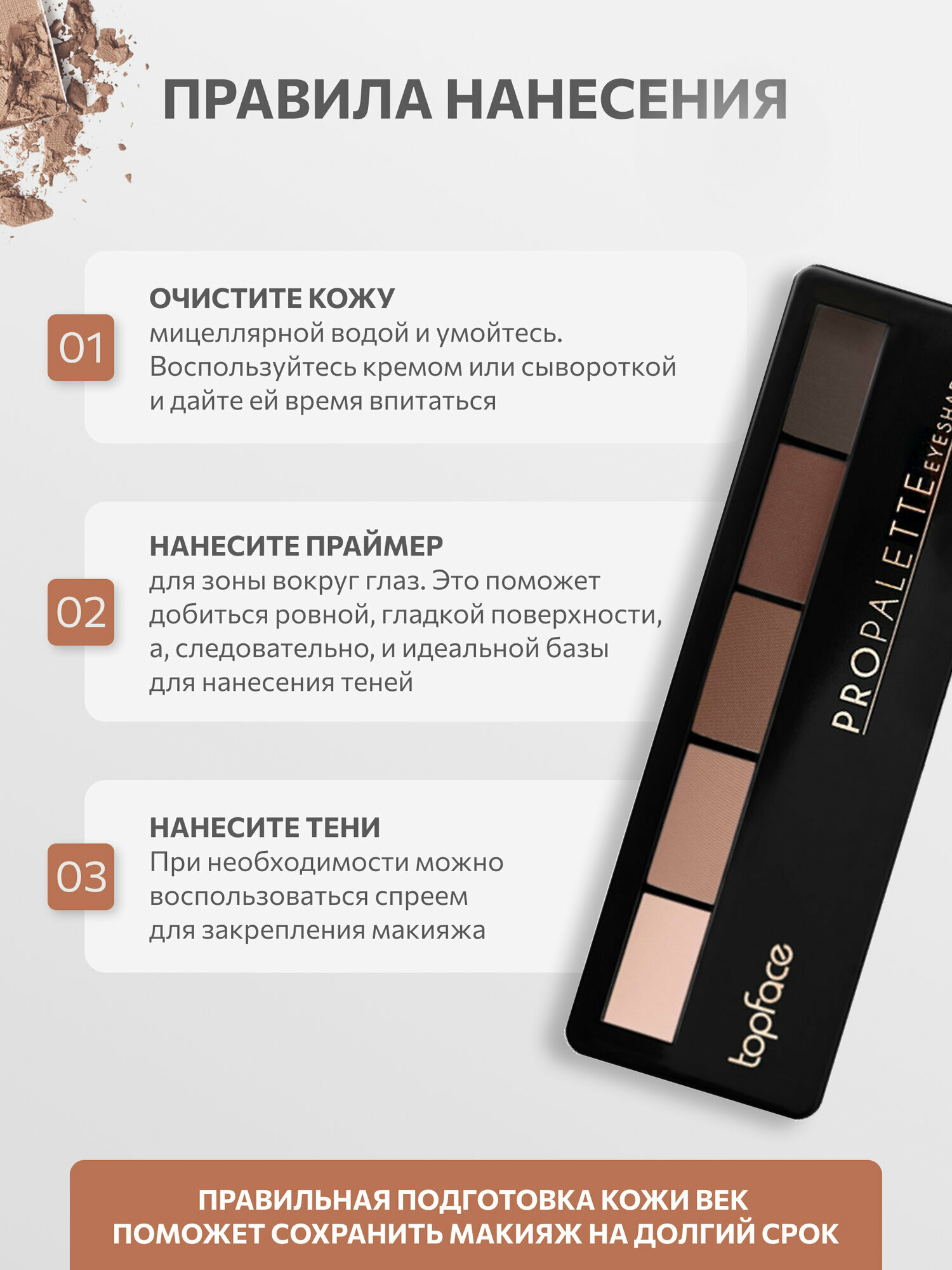 Тени для век Topface, серый цвет, матовые и сверкающие тени, компактная текстура, палетка 014