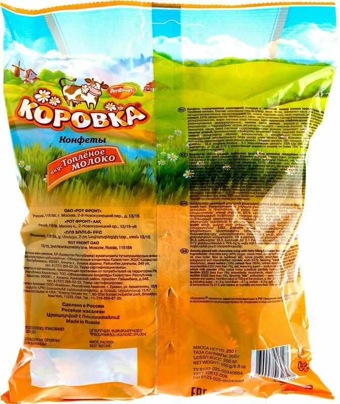 Конфеты Коровка вкус топленое молоко, пакет 250 г интересное: