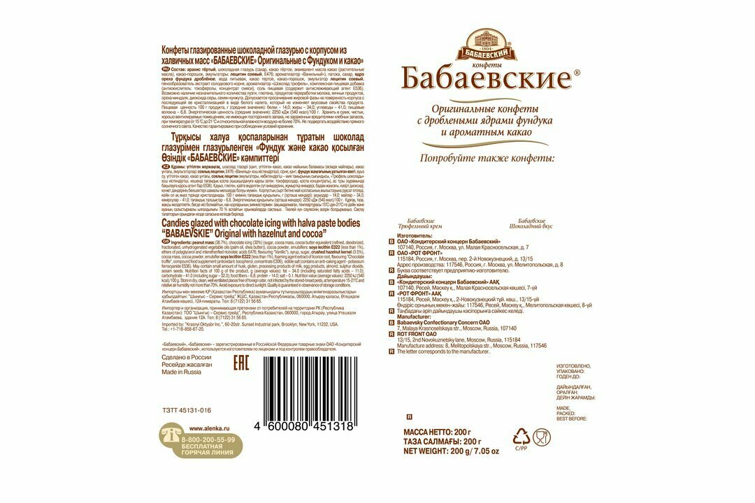 Конфеты Бабаевские оригинальные с фундуком, 200 г - бабаевский