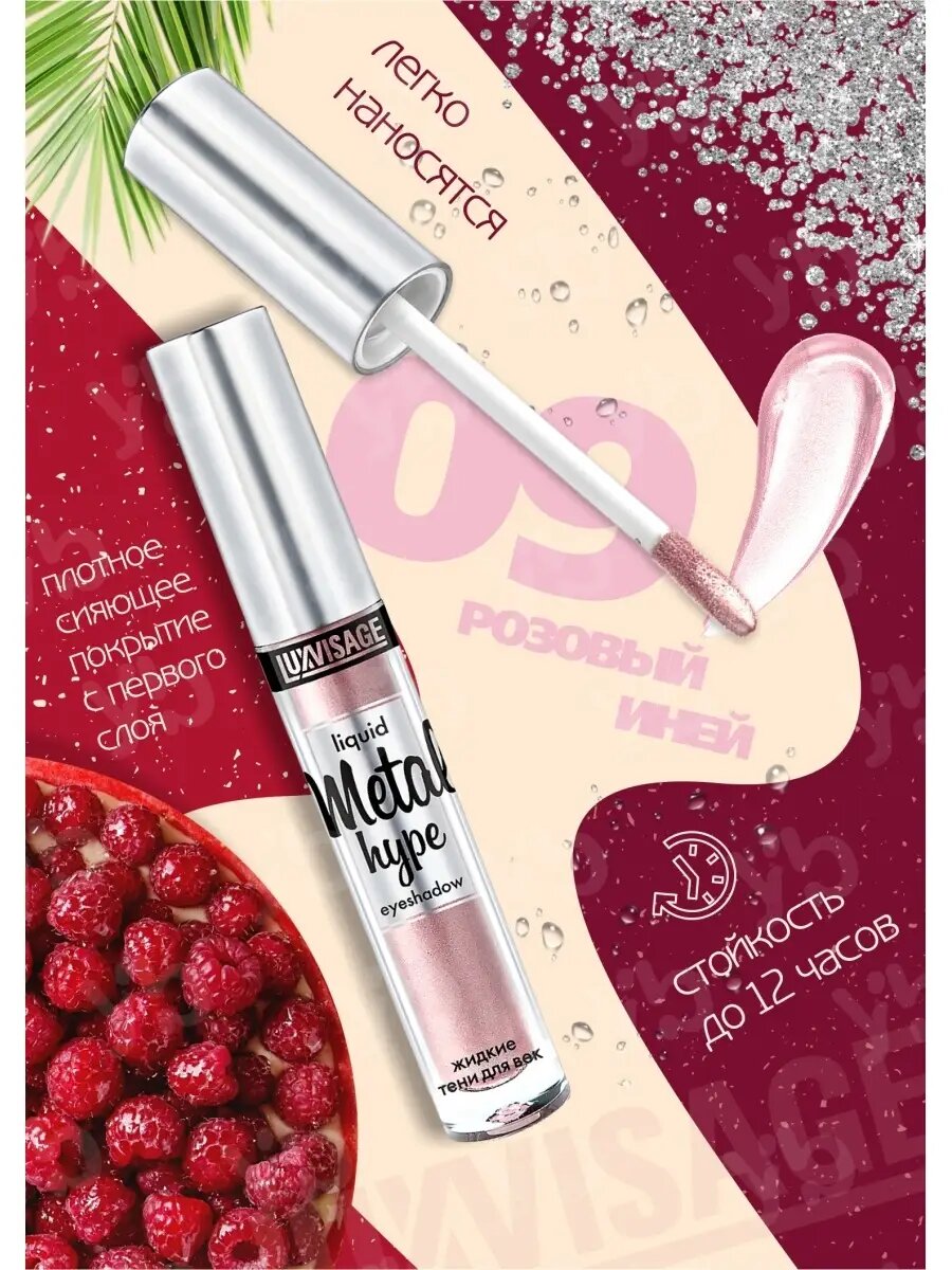 Тени для век LUXVISAGE METAL HYPE жидкие, тон 9 розовый иней