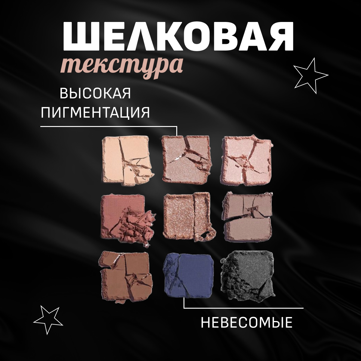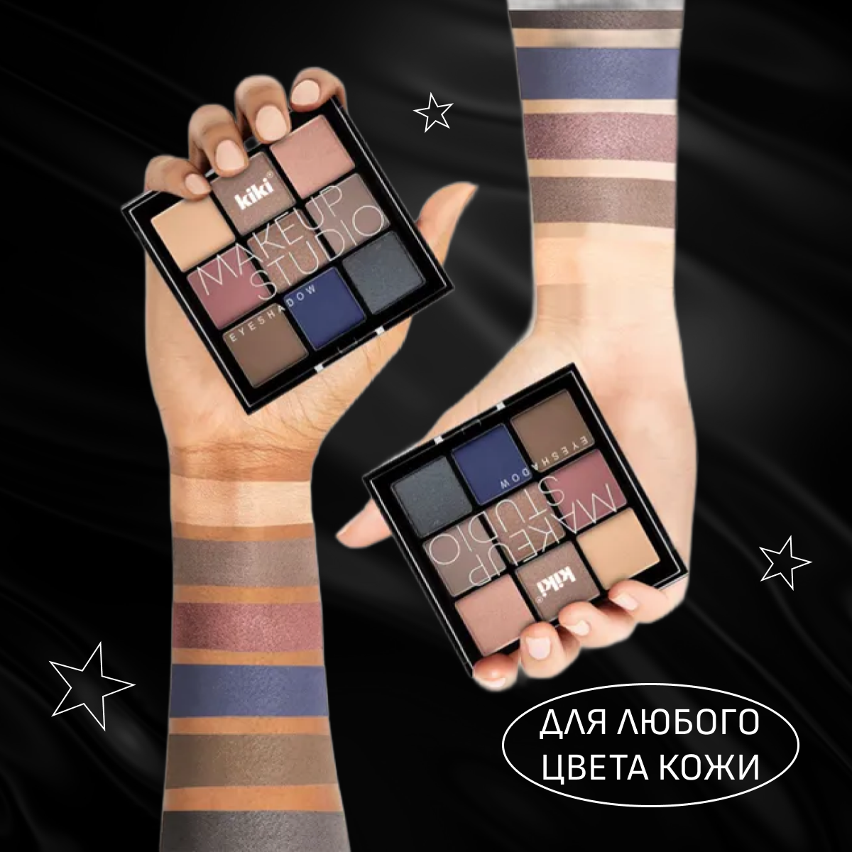 Тени для век kiki MAKEUP STUDIO 201 Smoky eyes, палетка из 9 сияющих оттенков для глаз, стойкие матовые и нюдовые цвета