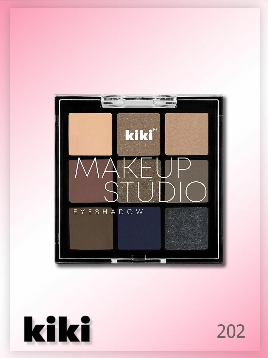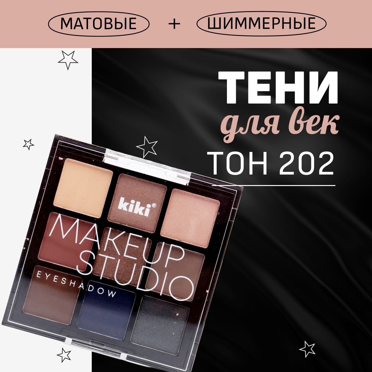 Тени для век kiki MAKEUP STUDIO EYESHADOW, тон 202 Mix, палетка из 9 сияющих оттенков, стойкие матовые и нюдовые цвета