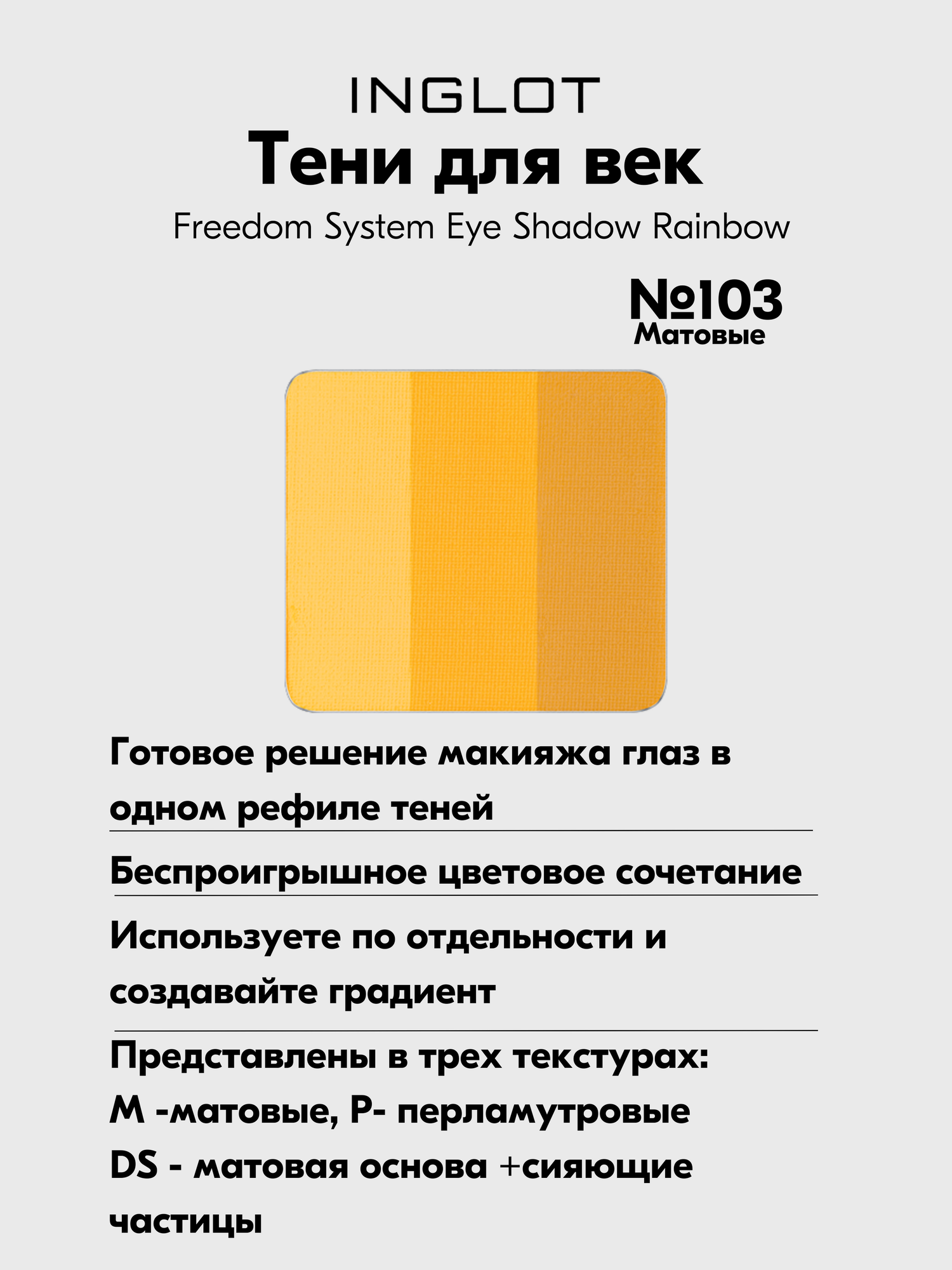 Тени для век INGLOT 3 в 1 freedom rainbow refil № 107, матовые, пигментированные
