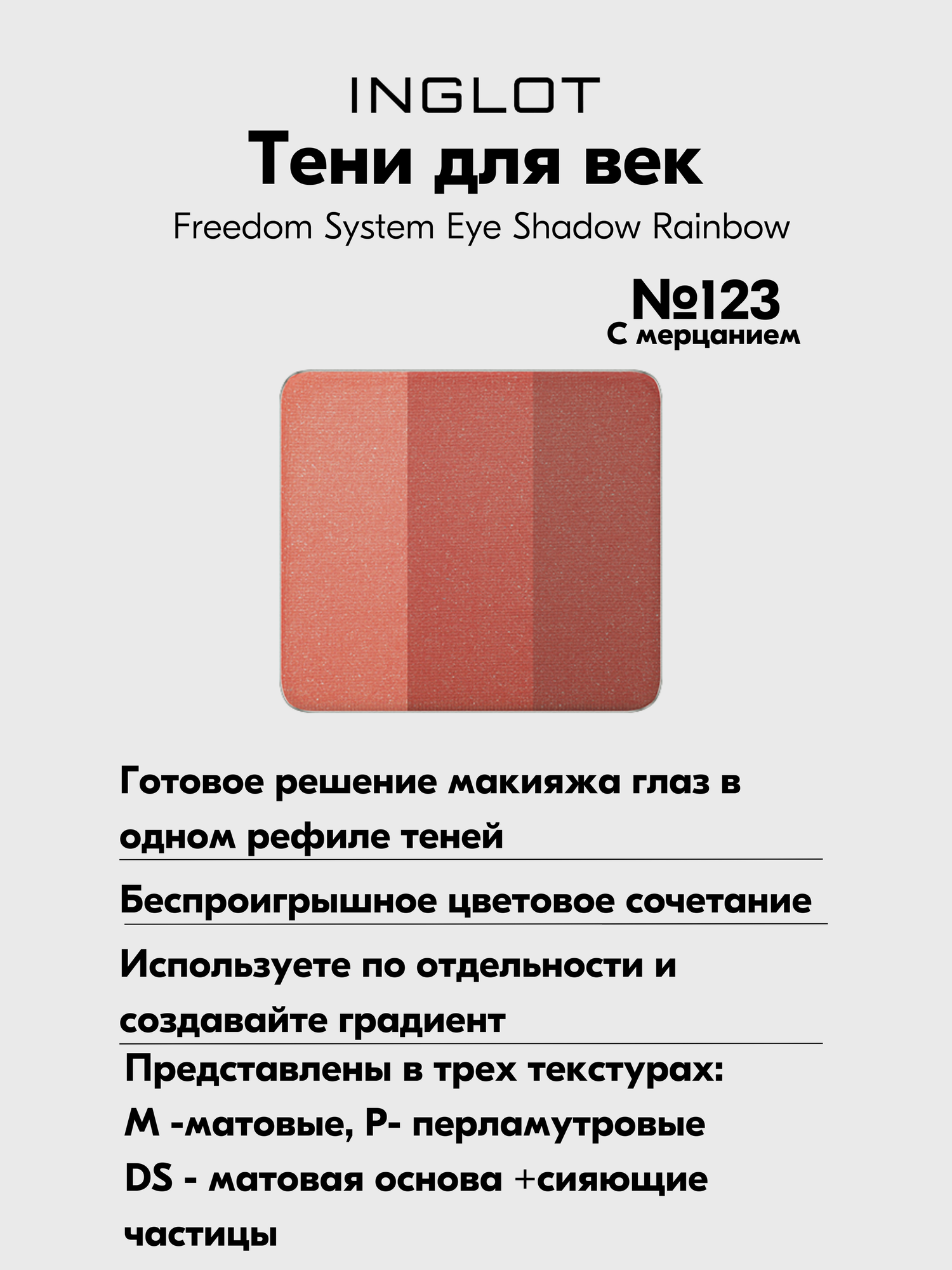 СохранитьТени INGLOT сияющие для макияжа глаз 3 в 1 Freedom System Eye Shadow Rainbow DS №123 интересное: