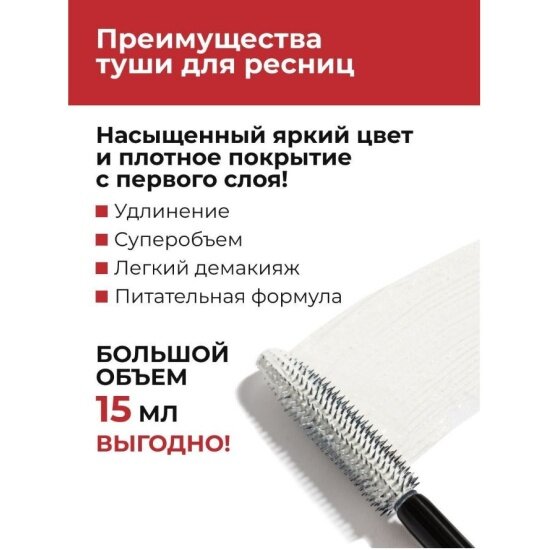 | Эффект | подкручивание / придание объема / разделение / удлинение / усиление роста ресниц / эффект накладных ресниц |