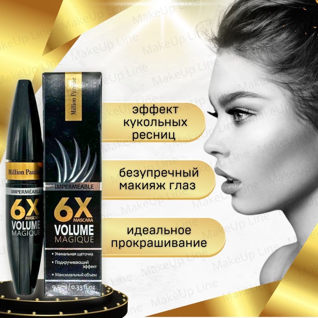 Влагостойкая Тушь для ресниц черная объем и удлинение 6Х объем интересное: