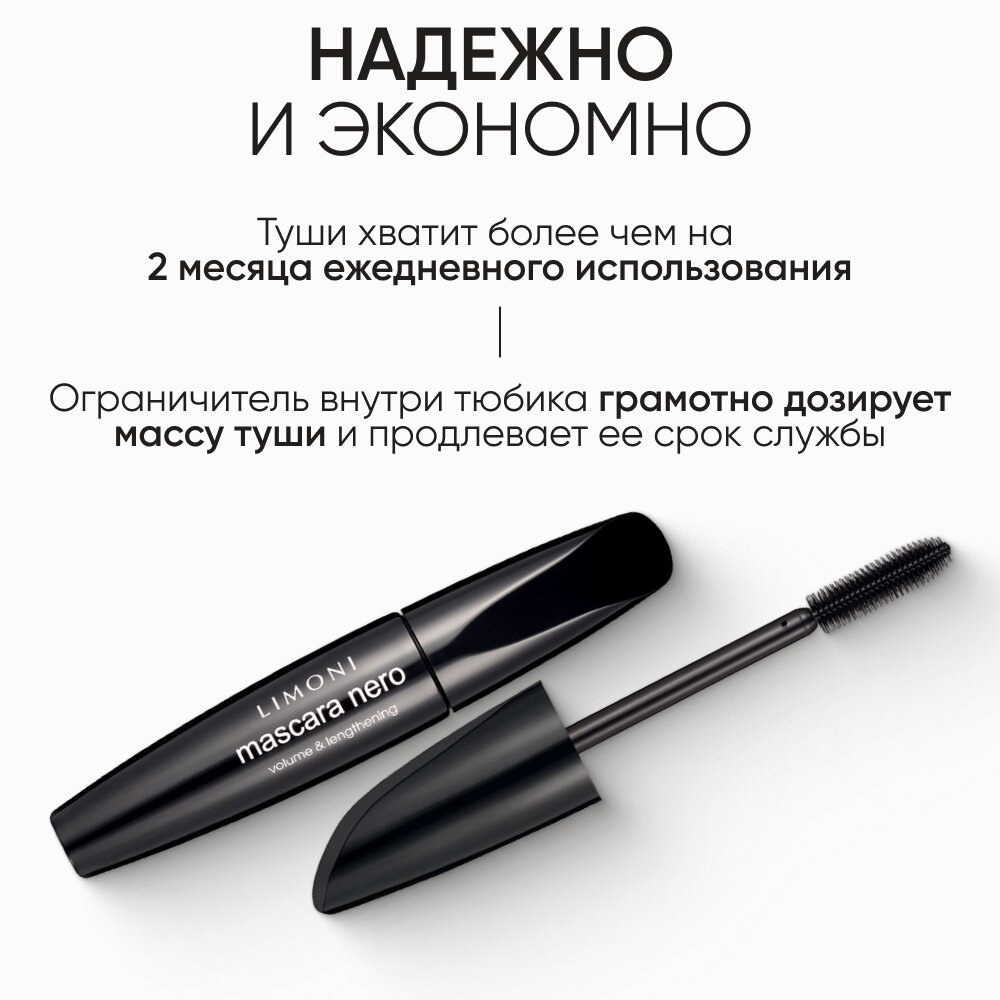LIMONI Тушь для ресниц черная Mascara Nero с эффектом объёма и удлинения, Италия интересное: