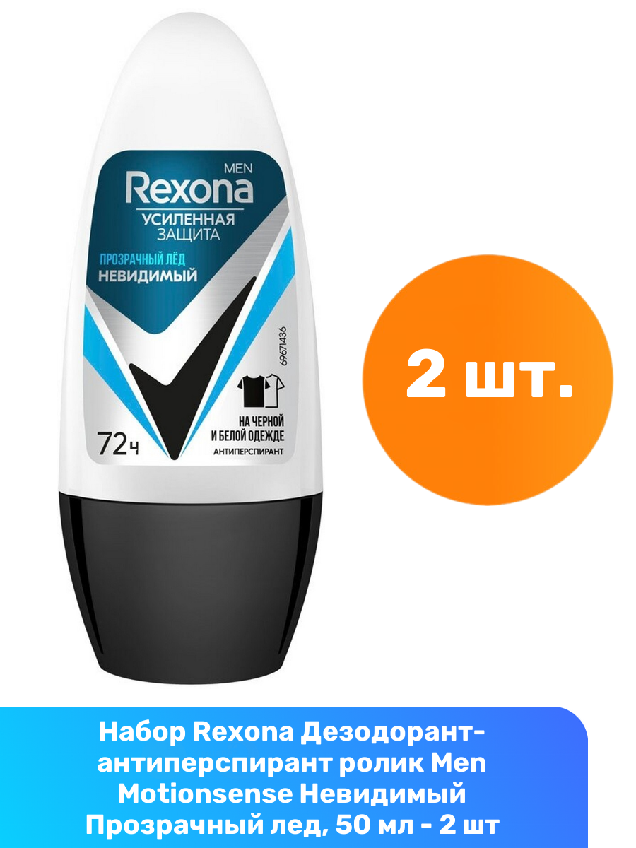 Купить Rexona Дезодорант-антиперспирант ролик Men Motionsense Невидимый Прозрачный лед, 50 мл - 2 шт