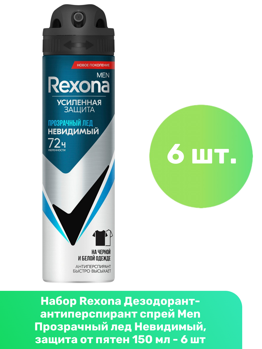 Rexona Дезодорант-антиперспирант спрей Men Прозрачный лед Невидимый, защита от пятен 150 мл - 6 шт интересное: