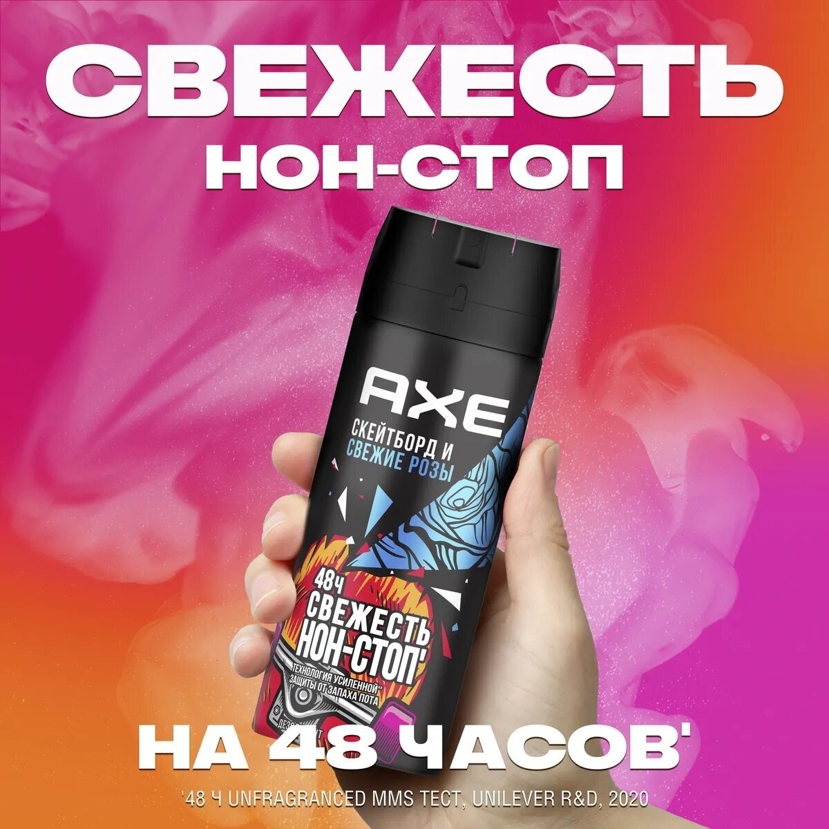 Дезодорант мужской спрей парфюмированный Акс Скейтборд и Свежие розы защита от запаха пота 48 часов 150 мл