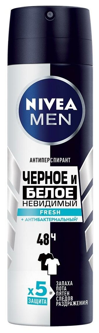 Nivea Men Дезодорант-антиперспирант спрей Невидимый для черного и белого Fresh, 150 мл - 1 шт