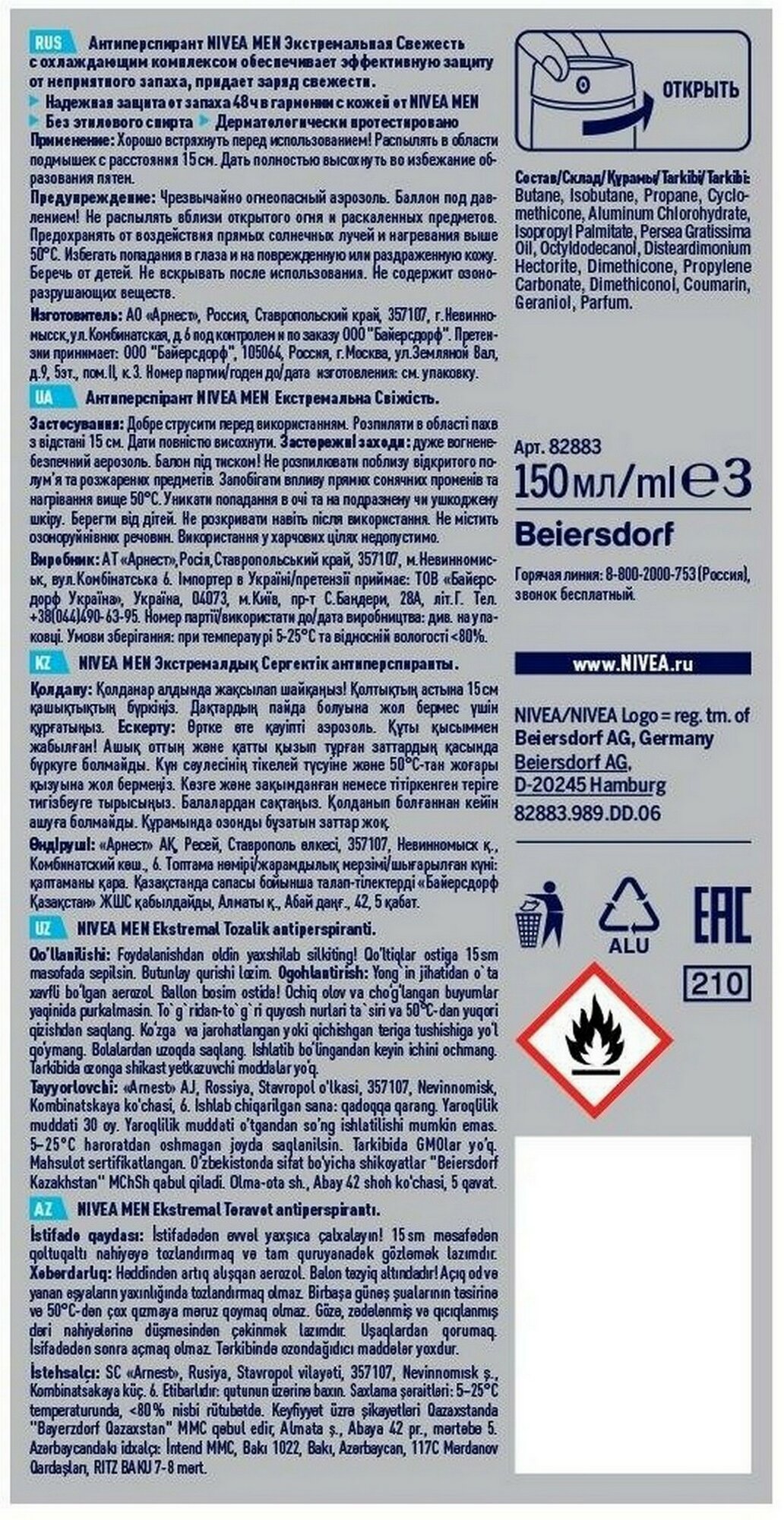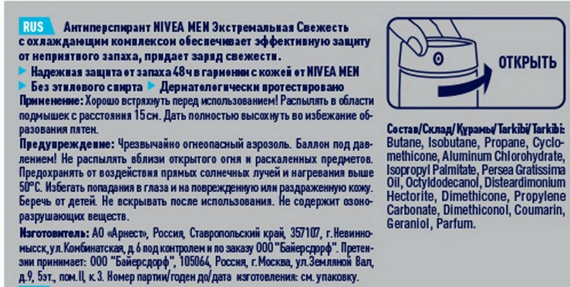 Ниже Вы можете прочитать отзывы на Дезодорант-антиперспирант спрей NIVEA MEN "Экстремальная свежесть" с ментолом, 150 мл., ознакомится с подробными характеристиками, посмотреть интересные обзоры и фотографии на Дезодорант-антиперспирант спрей NIVEA MEN "Экстремальная свежесть" с ментолом, 150 мл..