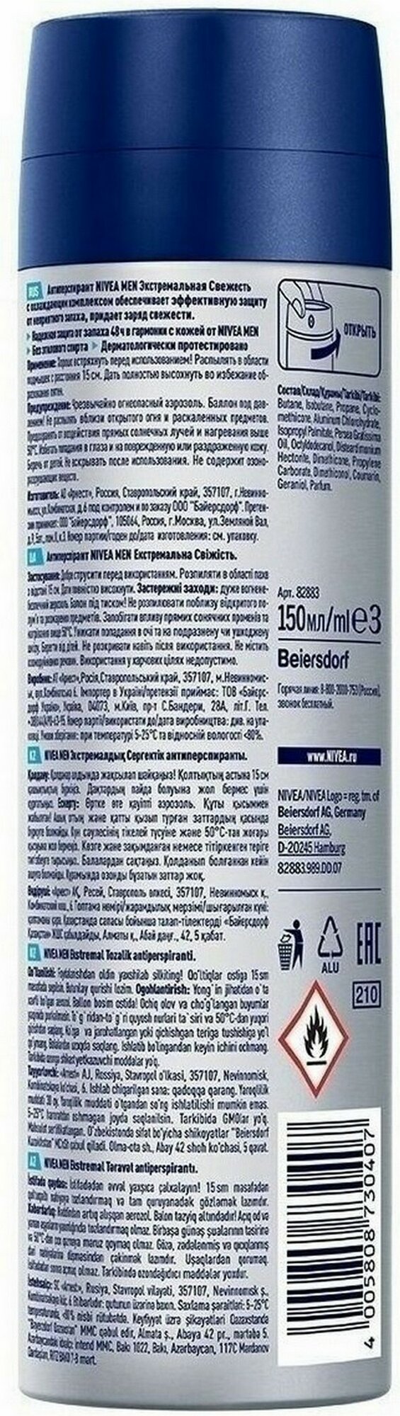 Дезодорант-антиперспирант спрей NIVEA MEN "Экстремальная свежесть" с ментолом, 150 мл. интересное: