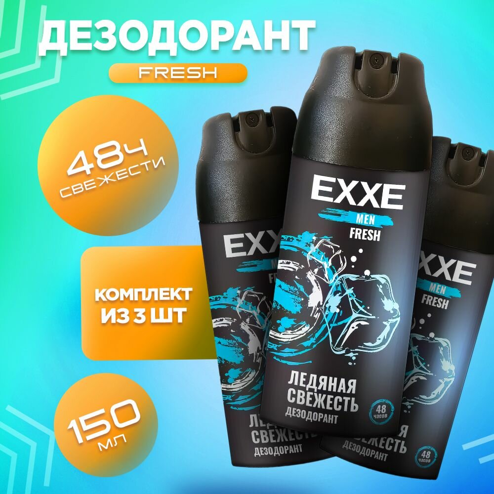 Дезодорант-спрей EXXE "FRESH", мужской, защита 48 ч, ледяная свежесть, 3шт по 150мл