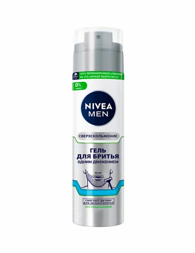 Гель для бритья одним движением NIVEA MEN "Сверхскольжение" без спирта* для чувствительной кожи, 200 мл.
