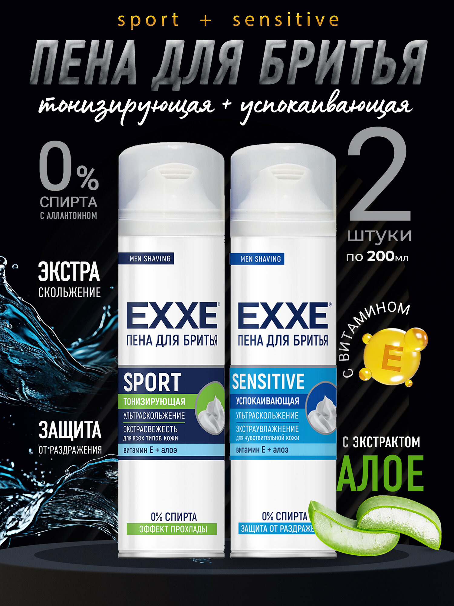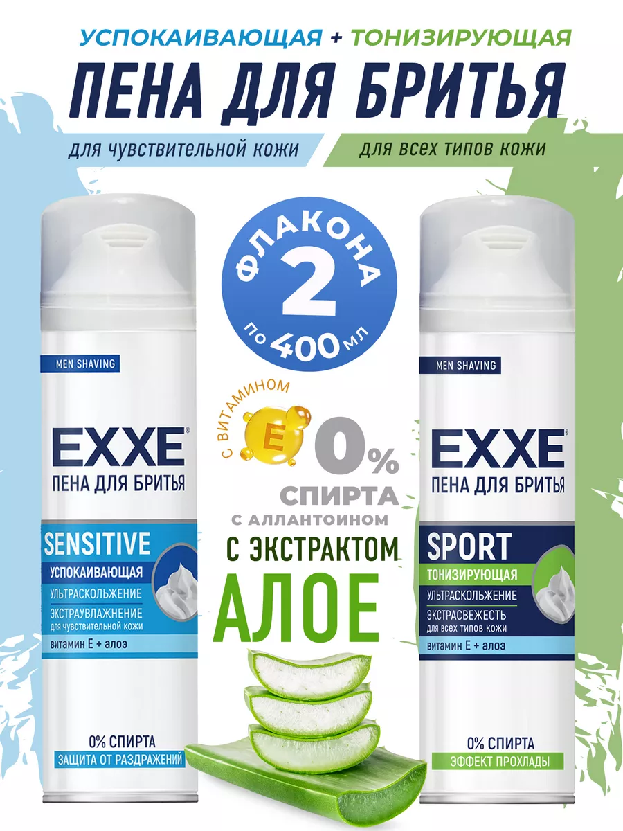Пена для бритья EXXE набор Sport и Sensetive 2х200мл, тонизирующая и успокаивающая интересное: