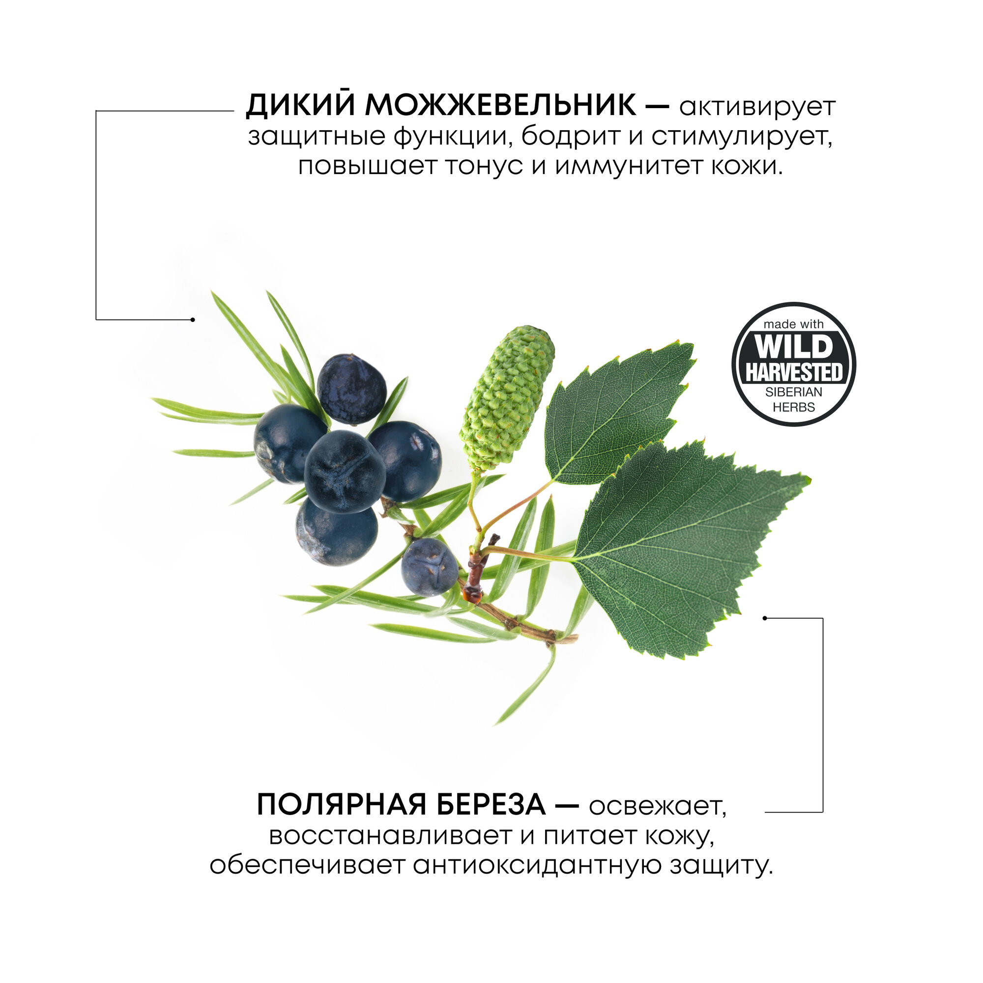 | Состав | Aqua with infusions of: Juniperus Sibirica Needle ExtractWH (экстракт можжевельника), Betula Alba Leaf ExtractWH (экстракт полярной березы), Melissa Officinalis Leaf Extract* (экстракт мелиссы), Calendula Officinalis (Marigold) Flower Extract* (экстракт календулы), Caltha Palustris Flower/Leaf/Stem Extract* (экстракт зверобоя), Eleutherococcus Senticosus ExtractWH (экстракт женьшеня); Sodium Coco-Sulfate, Cocamidopropyl Betaine, Lauryl Glucoside, Coco Glucoside, Sodium Cocoyl Glutamate, Glycerine, Glyceryl Oleate, Pineamidopropyl BetainePS (производное кедрового масла), Hippophae Rhamnoidesamidopropyl BetaineHR (производное масла алтайской облепихи), Benzyl Alcohol, Ethylhexylglycerin, Parfum, Benzyl Benzoate. |