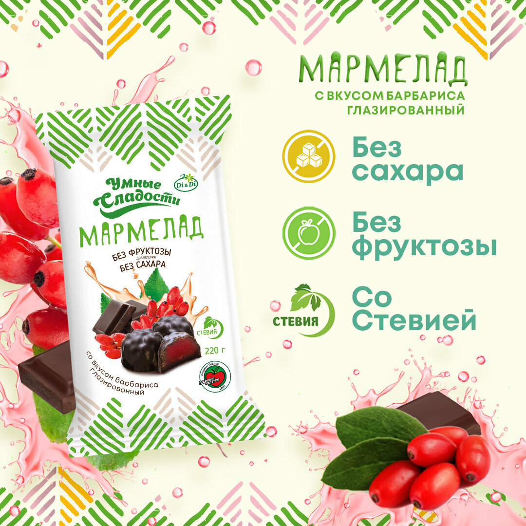 Мармелад Умные сладости Di&Di желейный в шоколадной глазури,стевия, 220г интересное: