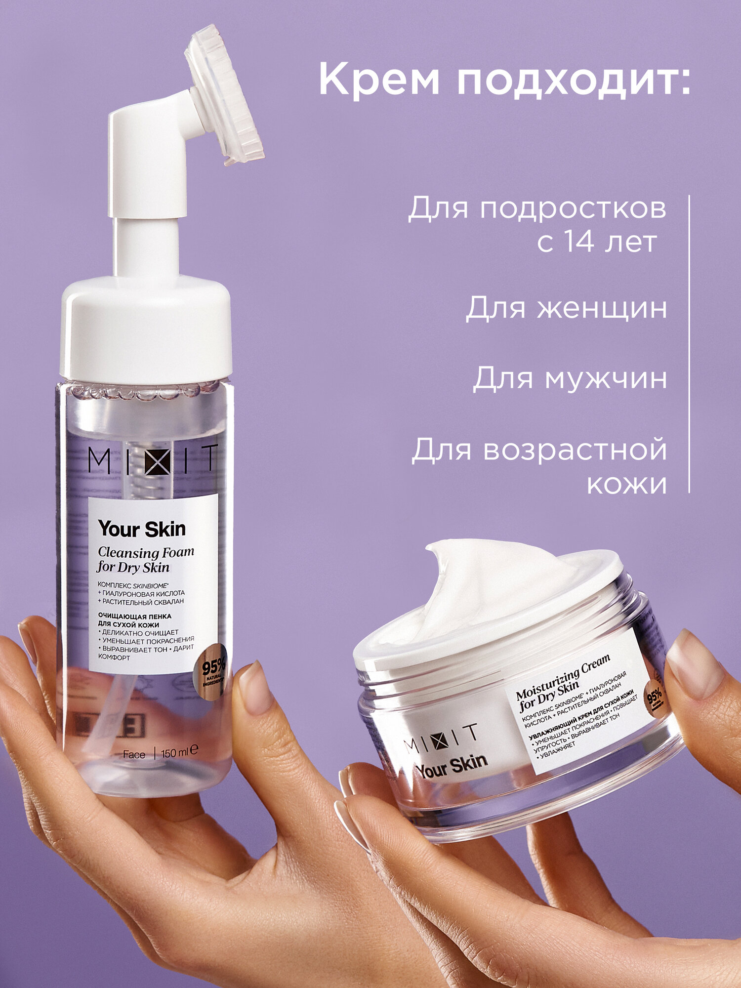 Набор косметики MIXIT: крем для лица увлажняющий с гиалуроновой кислотой и пенка очищающая для умывания интересное: