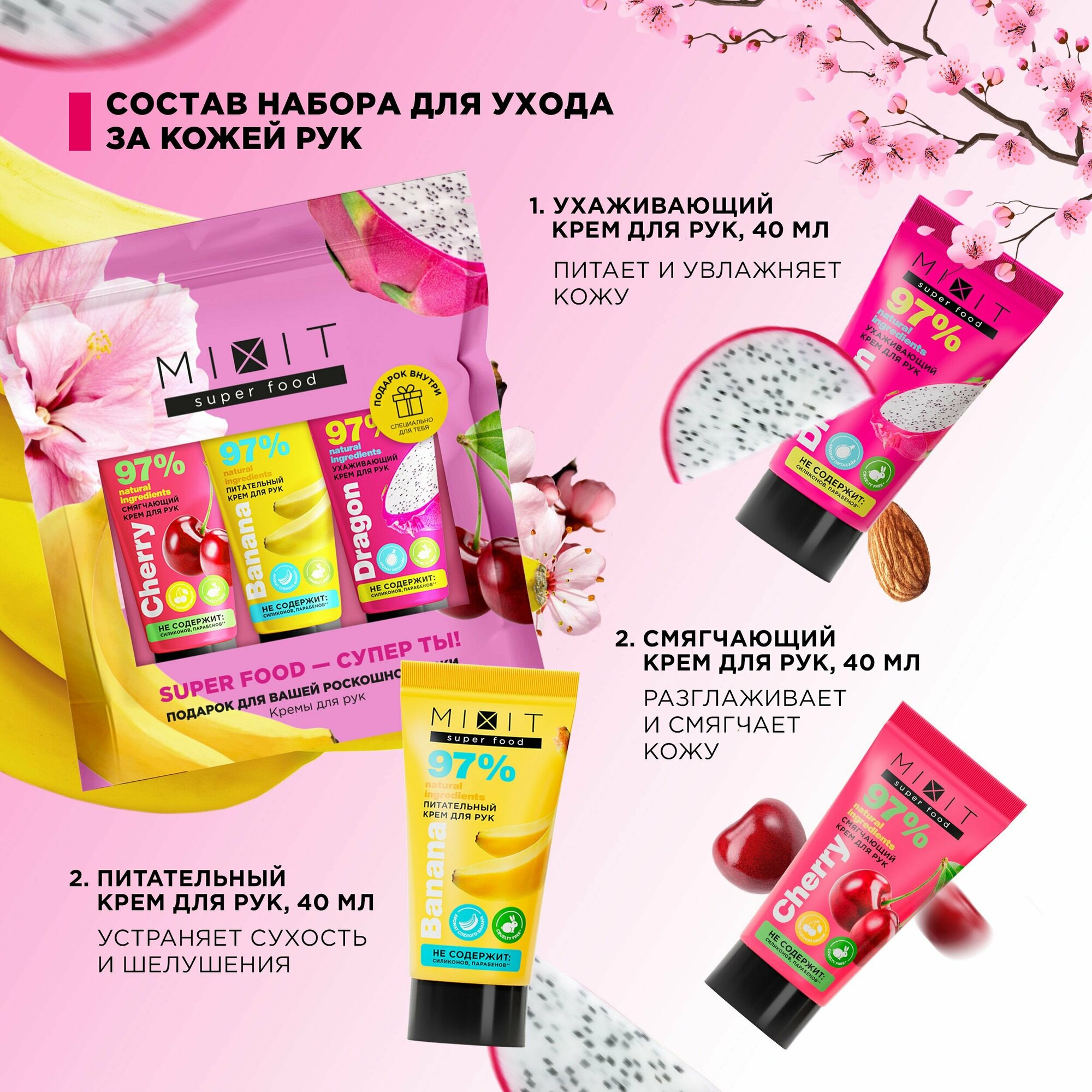 Купить MIXIT Подарочный набор уходовой косметики: гель для душа, лосьон для тела, крема для рук, шампунь и бальзам для волос SUPER FOOD