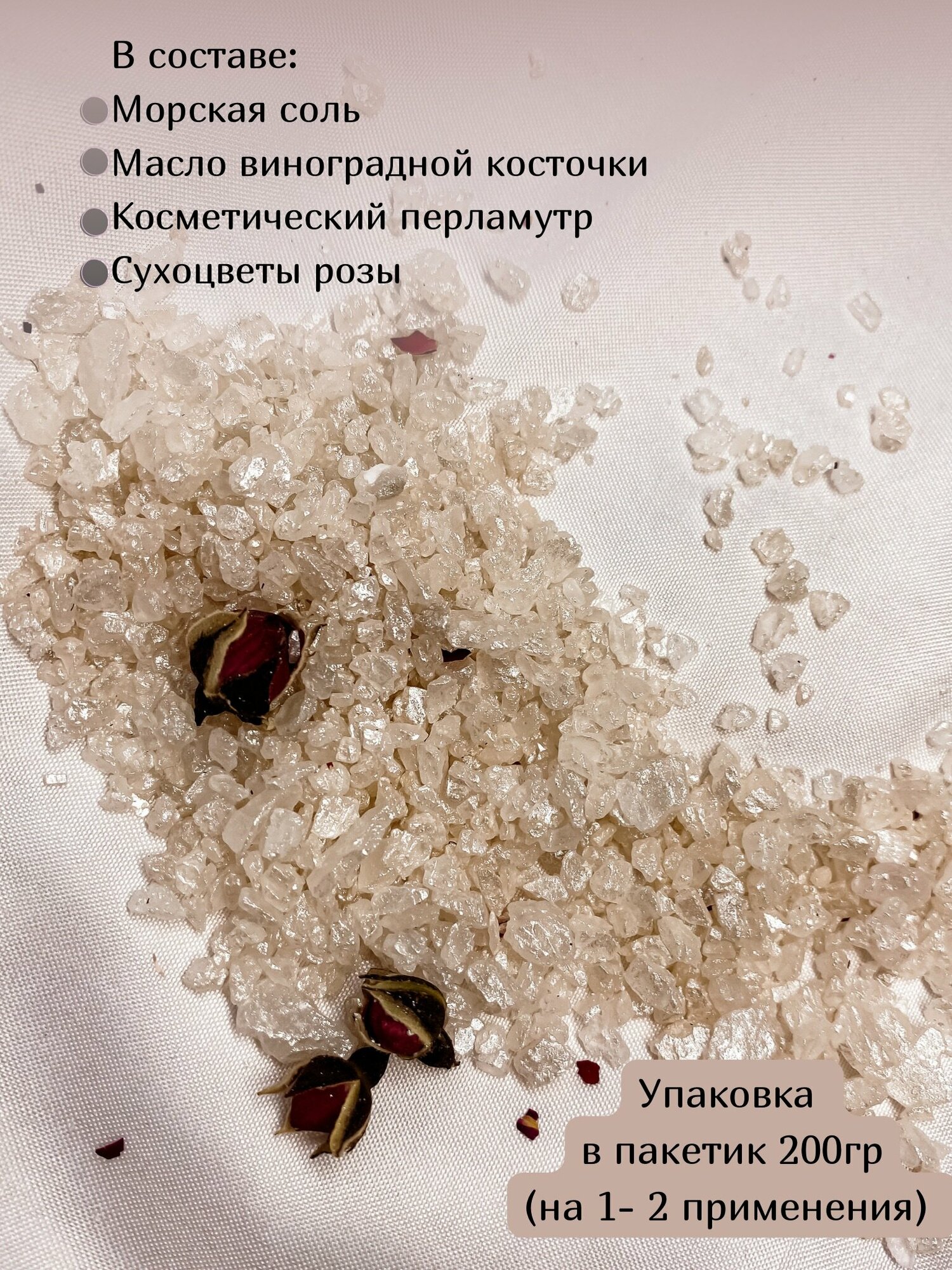 | Состав | Бомбочка для ванны ,Глицериновое мыло / Свеча из вощины / Морская соль с шиммером и сухоцветами розы / Открытка |