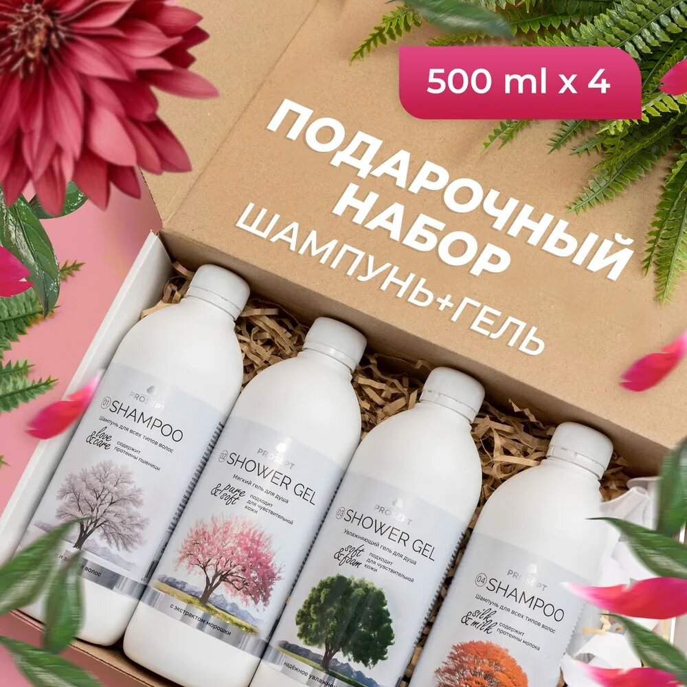 Купить Подарочный набор для женщин, подруге, маме шампунь и гель "Времена года" Prosept 4шт по 500 мл