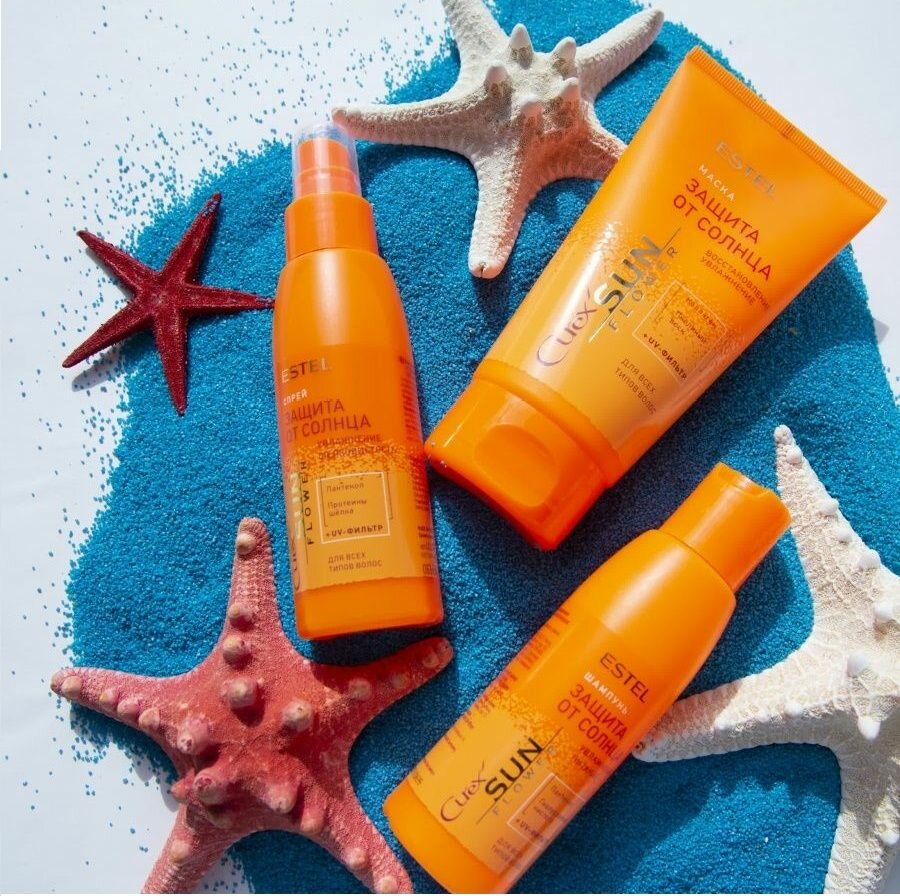 | Способ применения | шампунь: нанесите на влажные волосы, хорошо вспеньте массажными движениями 1-2 минуты, тщательно смойте; спрей: распылить на чистые сухие или влажные волосы во или во время пребывания на солнце или в солярии, не смывать; маска: нанести маску на чистые влажные волосы, массирующими движениями равномерно распределить по всей длине, оставить на 5-10 минут, затем тщательно смыть |