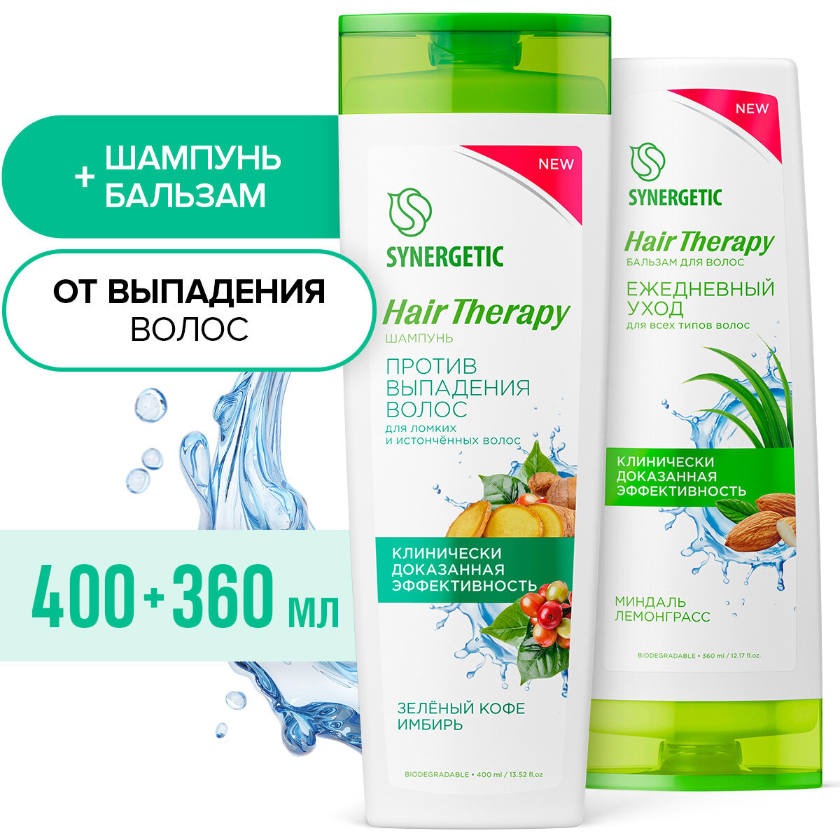 Спайка SYNERGETIC Шампунь против выпадения волос + Бальзам для волос ежедневный уход HAIR THERAPY интересное: