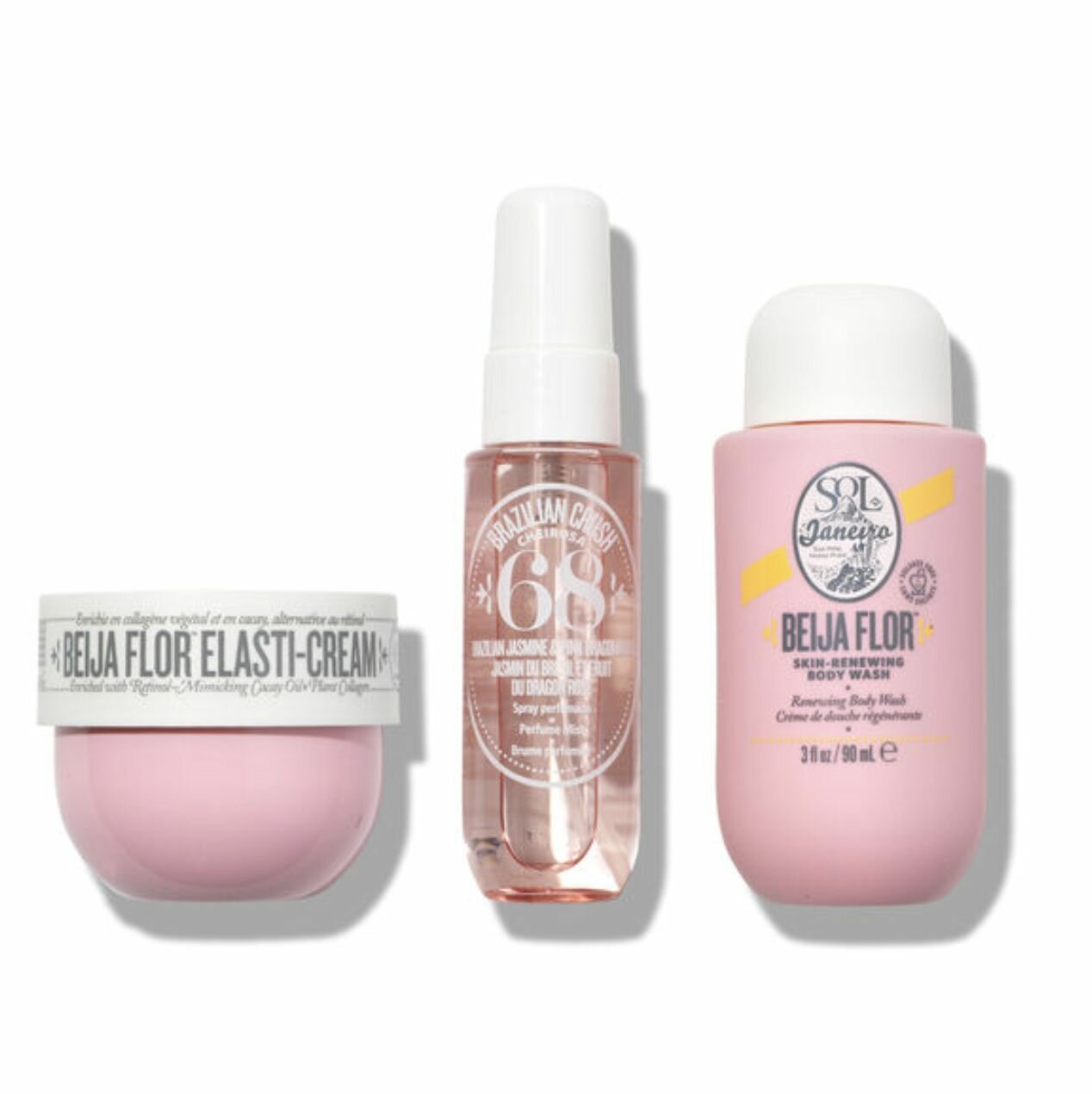 | В наборе | Beija Flor Elasti-Cream увлажняющий крем для тела 50 мл. Парфюмированный спрей для тела и волос Brazil Crush Cheirosa '68 30 мл. Кремовый гель для душа Beija Flor 90 мл |
