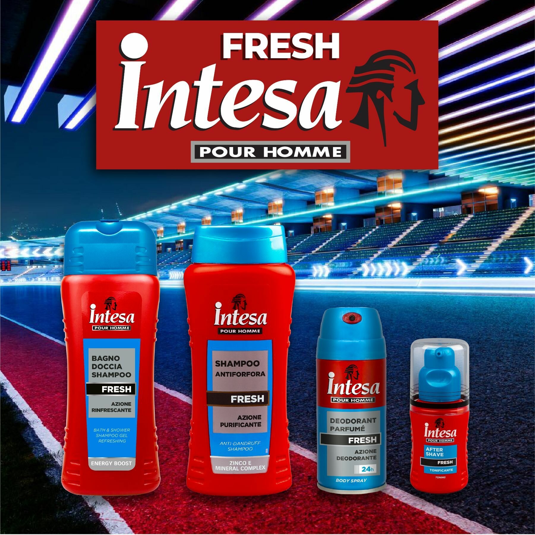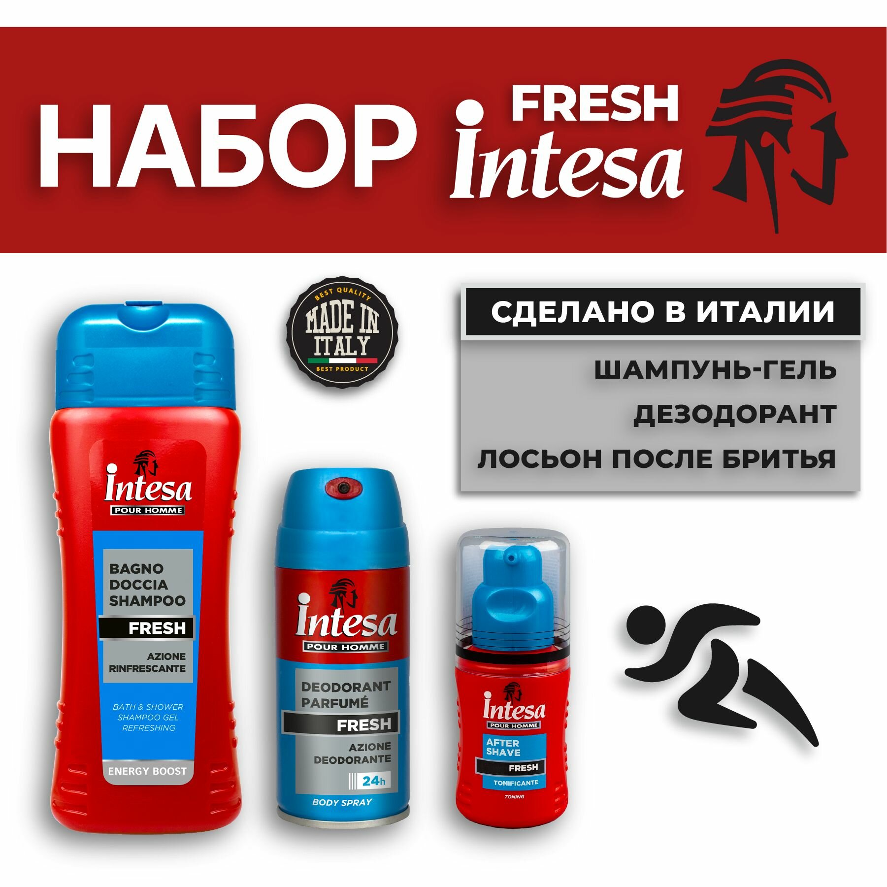 Подарочный набор мужской косметики Intesa Fresh, шампунь-гель 500 мл, дезодорант 150 мл, лосьон 100 мл