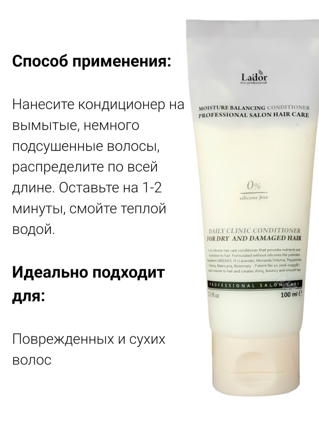 Lador, Кондиционер для волос увлажняющий бессиликоновый - Moisture balancing conditioner, 100мл