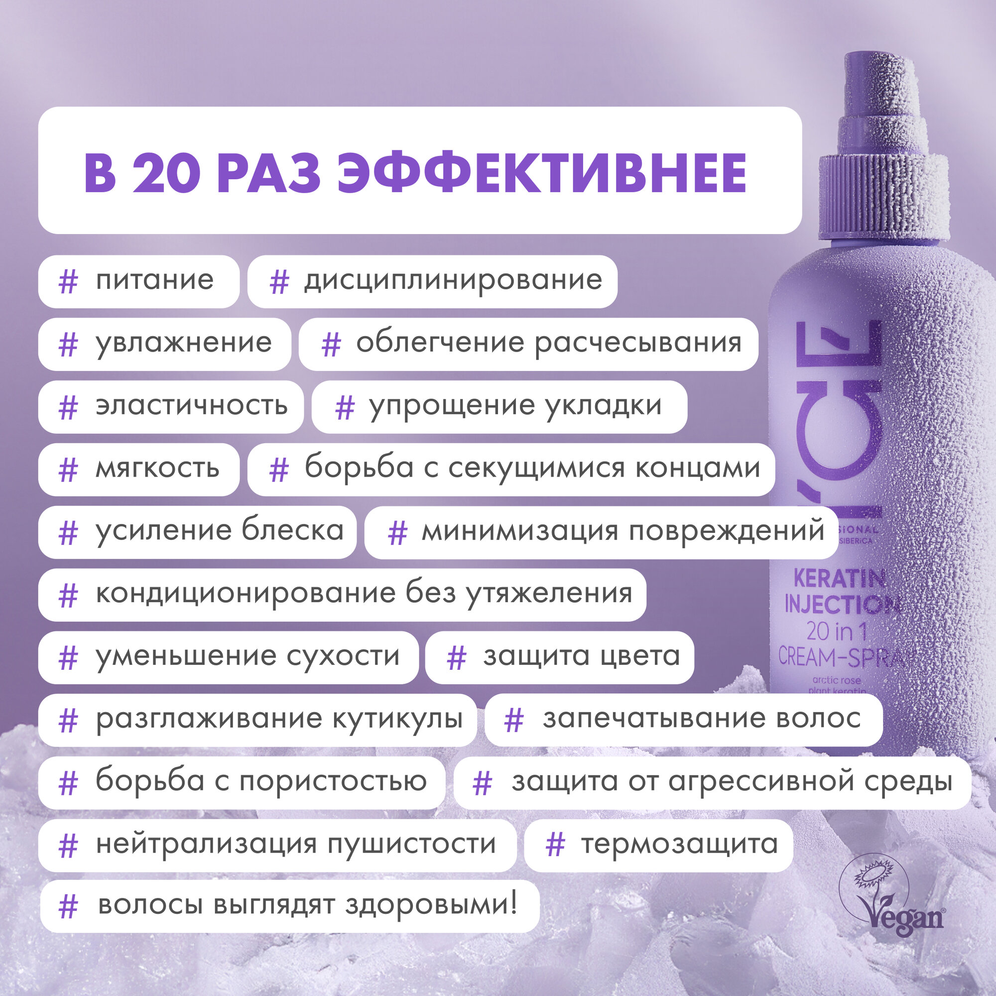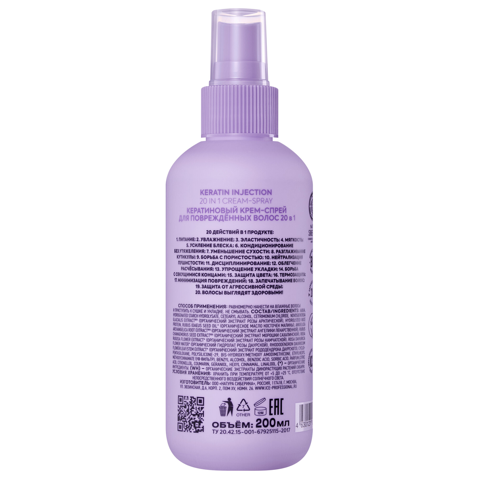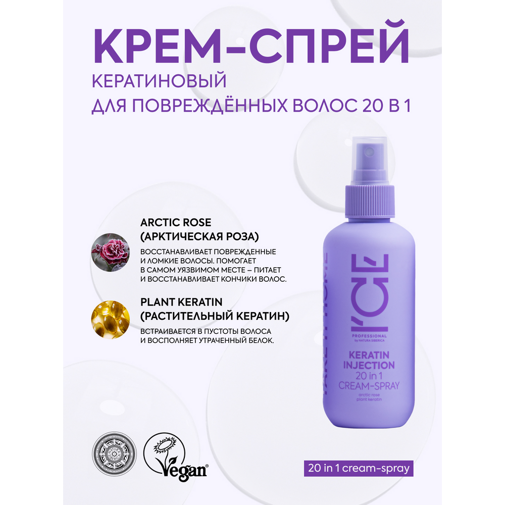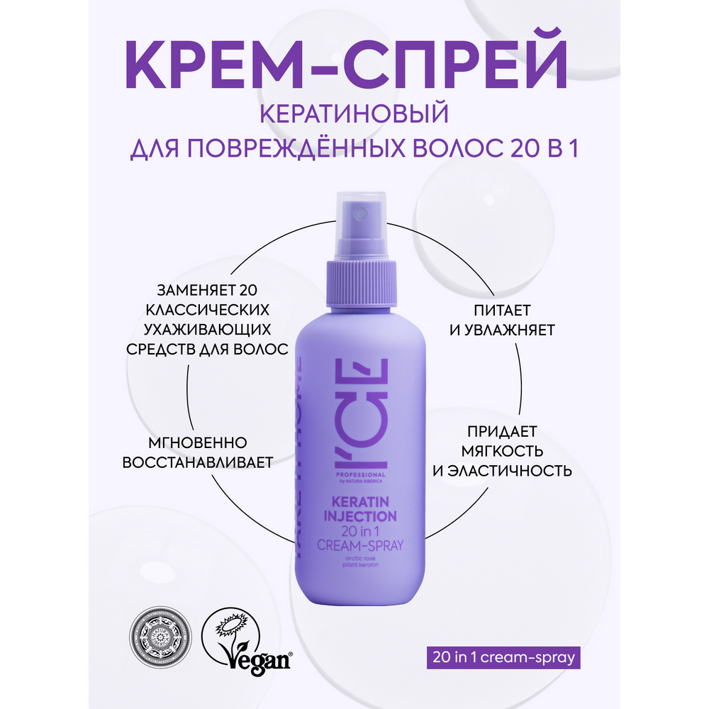 Кератиновый спрей для поврежденных волос 20 в 1 Keratin Injection ICE Professional by Natura Siberica, Take It Home, 200 мл интересное: