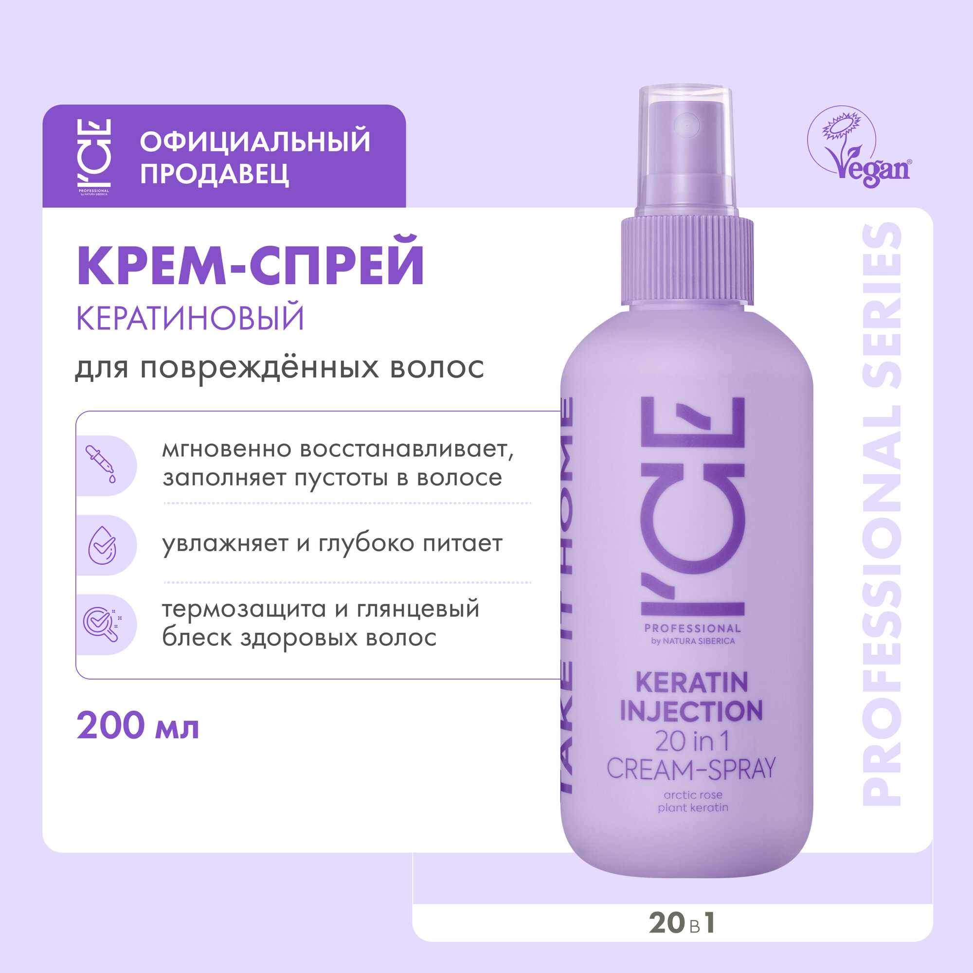 Купить Кератиновый спрей для поврежденных волос 20 в 1 Keratin Injection ICE Professional by Natura Siberica, Take It Home, 200 мл