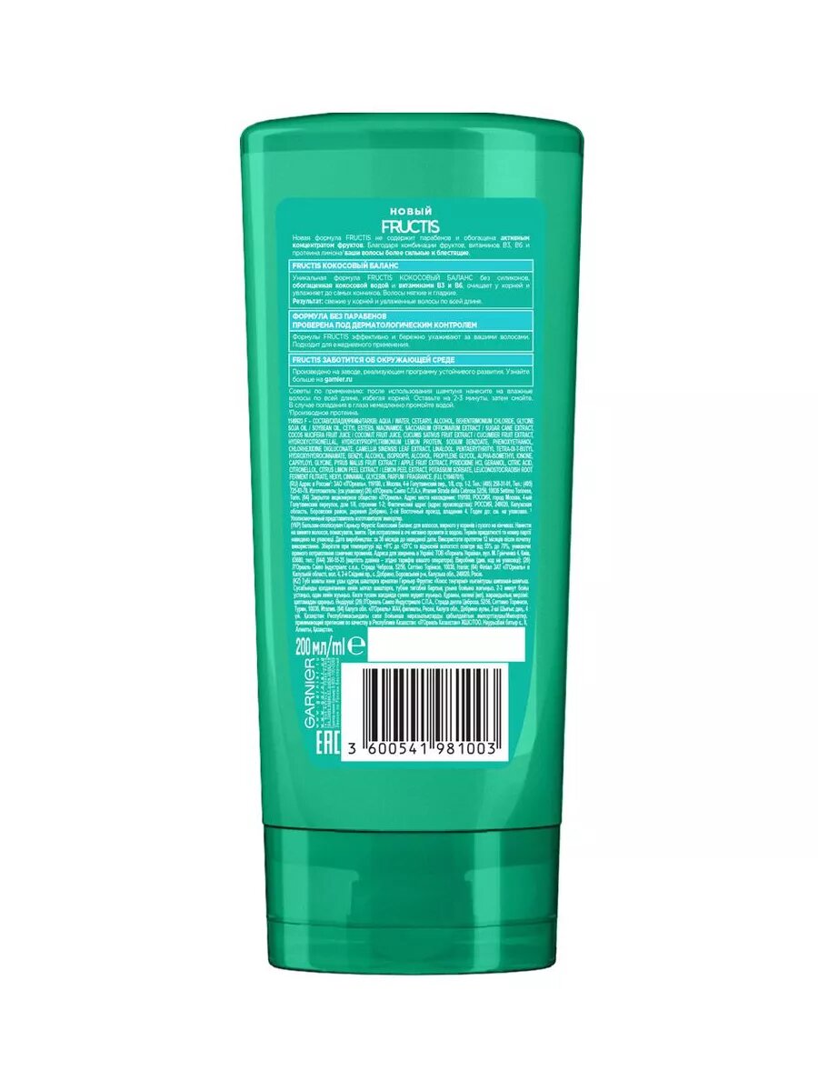 Fructis Бальзам для волос Кокосовый Баланс, укрепляющий, для волос жирных у корней и сухих на кончиках, с кокосовой водой, 200 мл