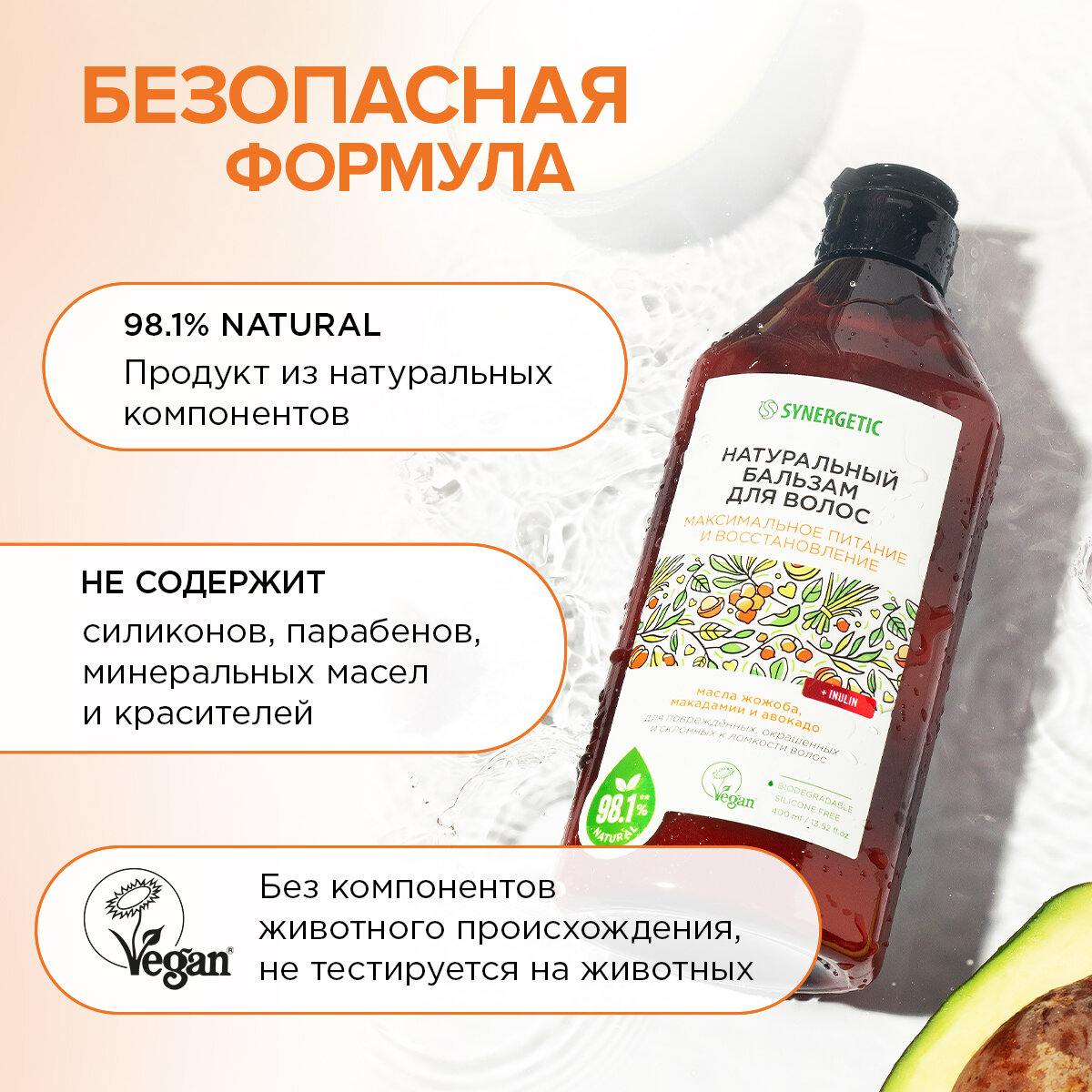 Бальзам для волос Synergetic Натуральный, Максимальное питание и восстановление, 400 мл (4607971455066)