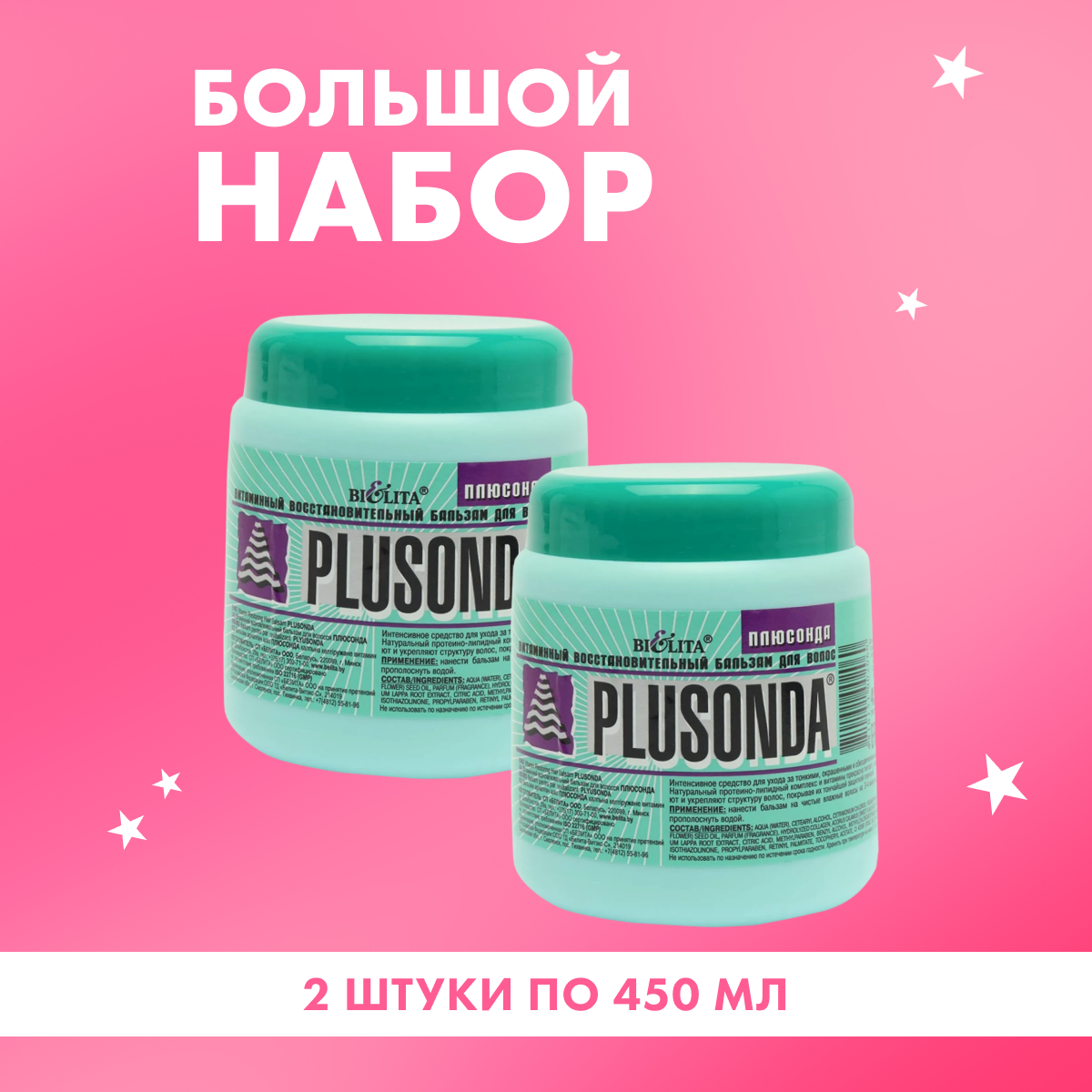 Купить Бальзам Belita для волос восстановительный Плюсонда 2 шт по 450 мл